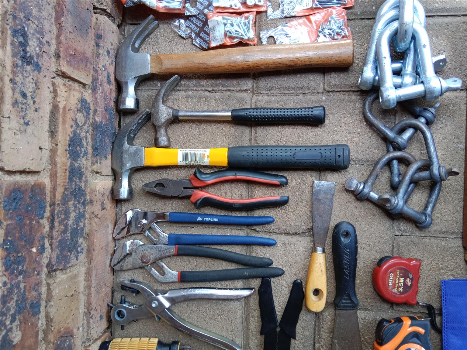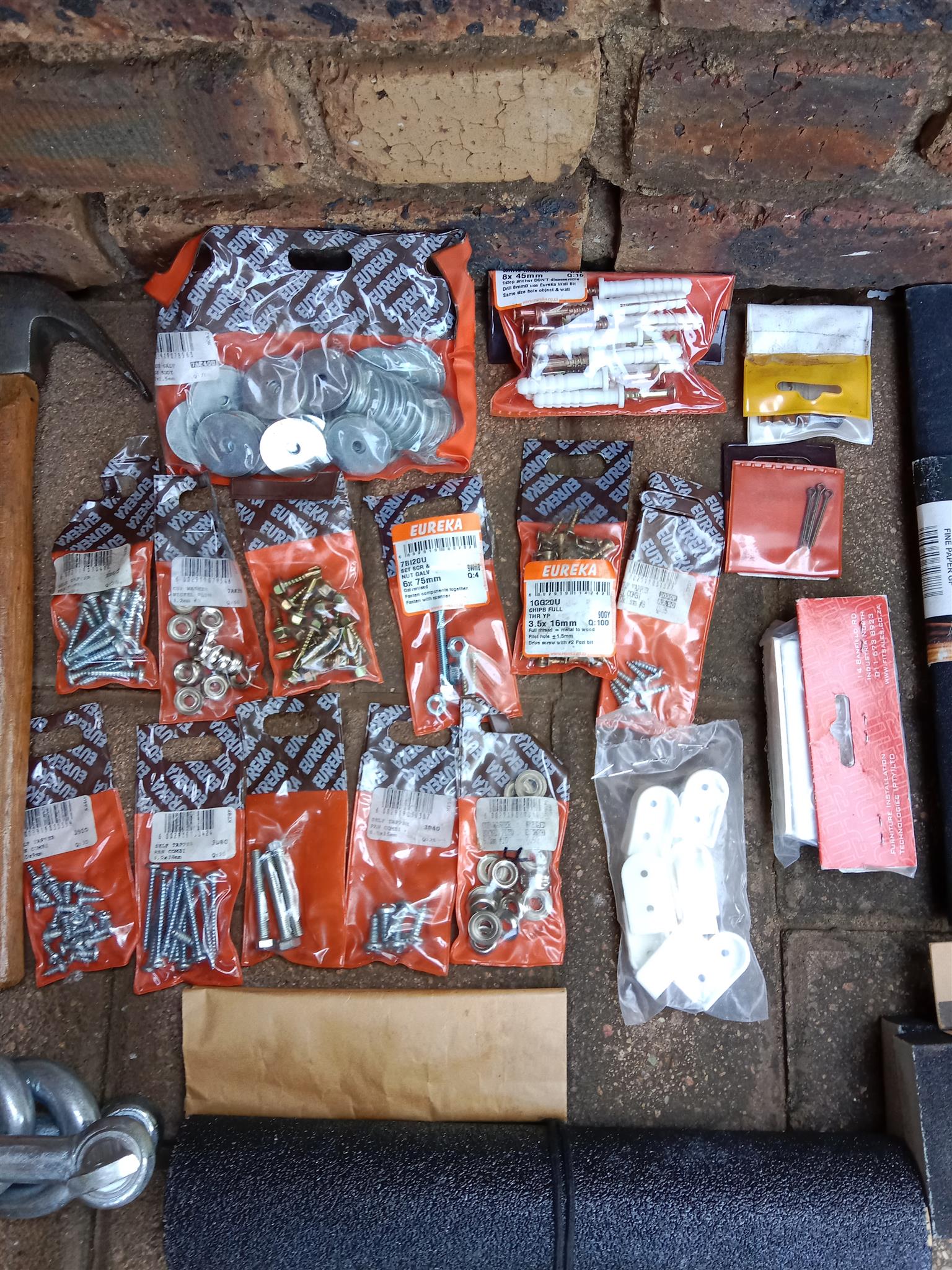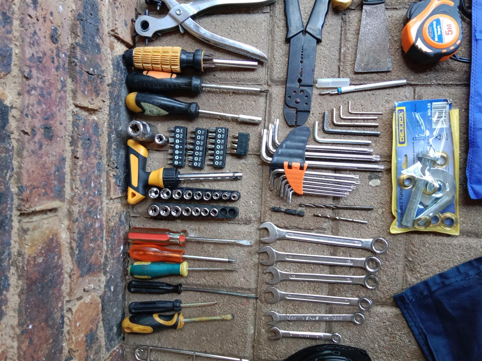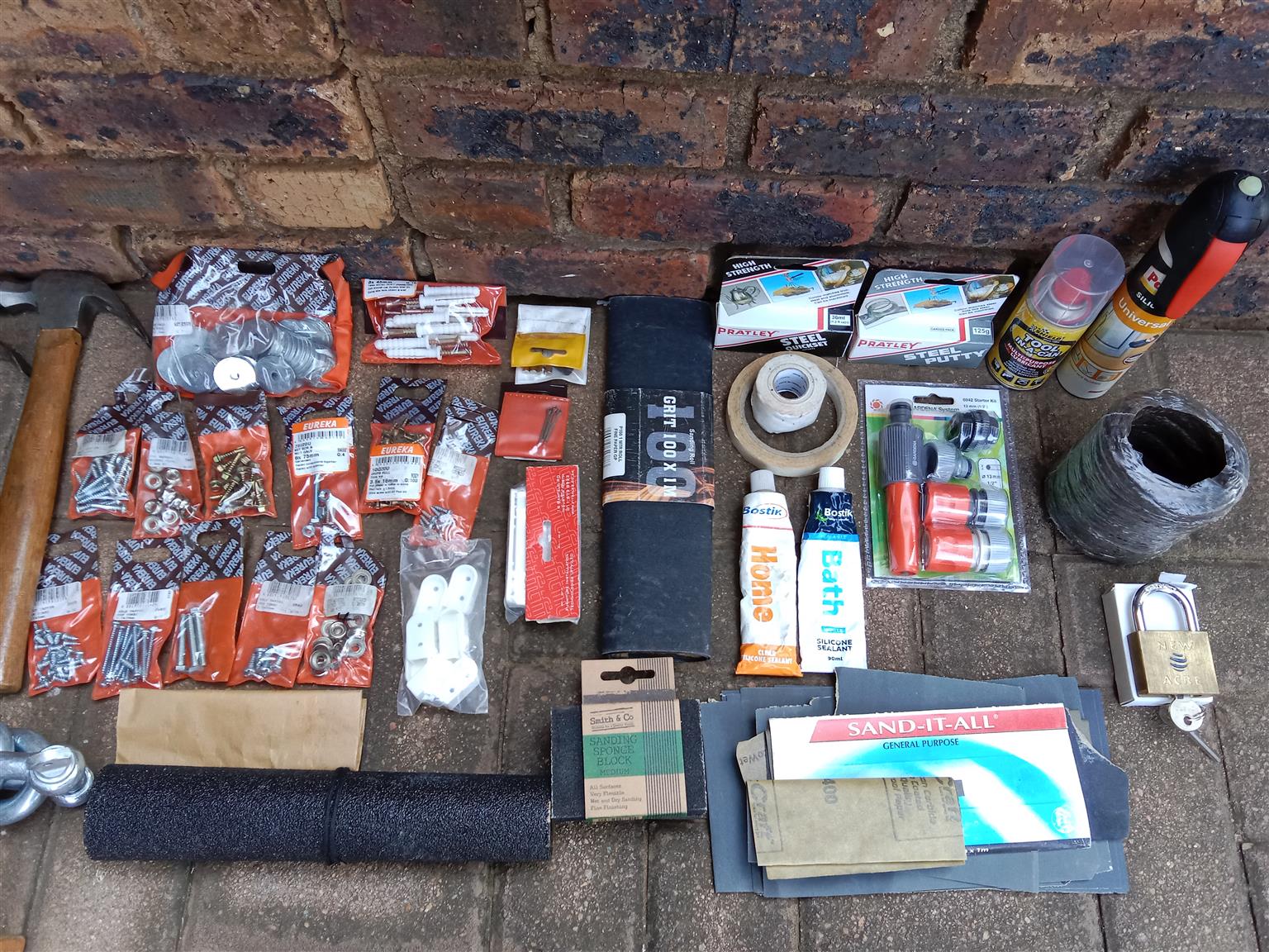 All items are in very good working condition. Some items, such as the Eureka screws, nuts, and washers, are not brand new or complete sets, but are still perfectly usable. Other items like the pliers and spanners are fully functional but may require some basic cleaning to look their best. The Garden Hose Fittings & Nozzle are brand new and sealed, and the two padlocks with keys are also brand new.