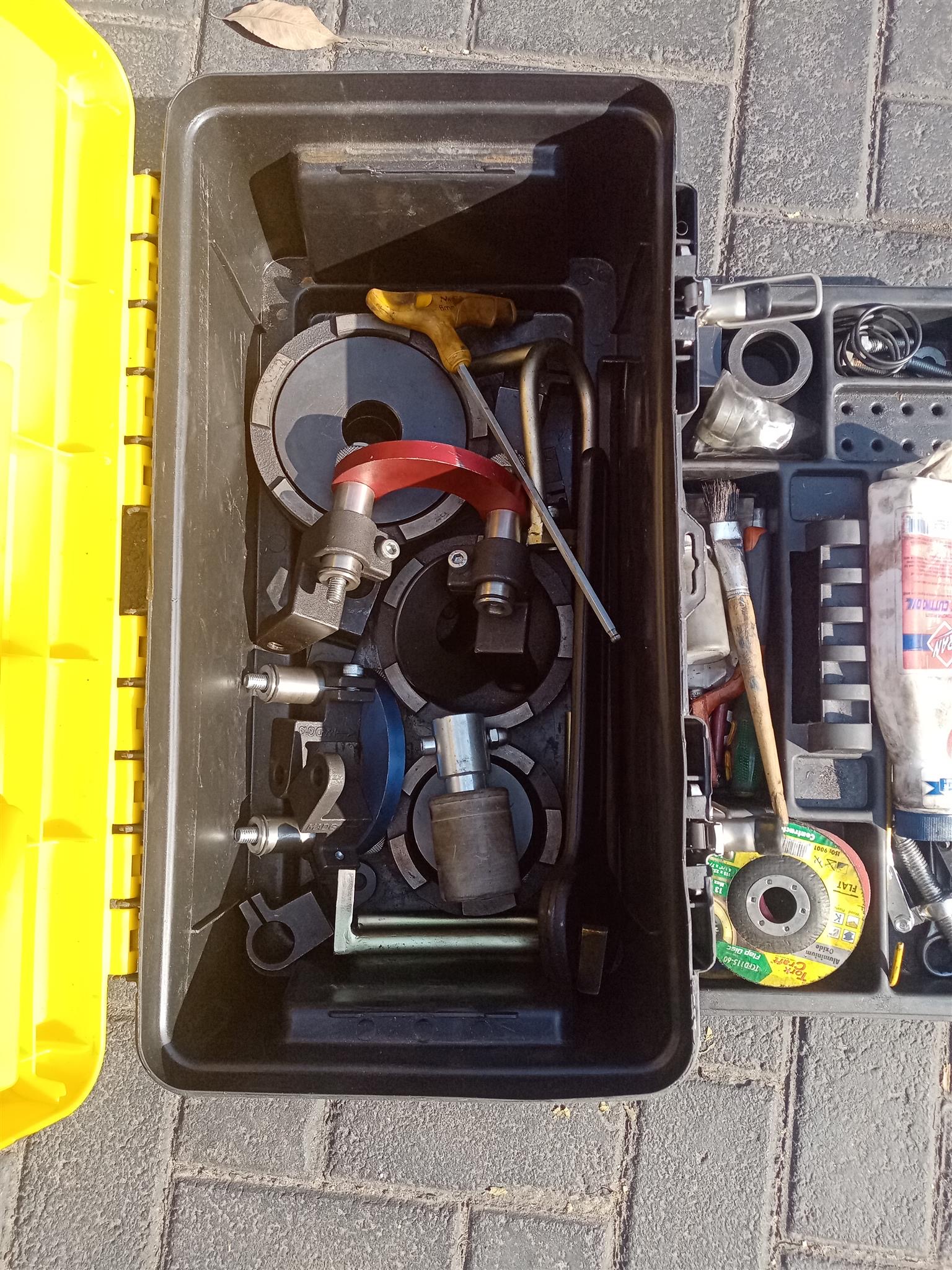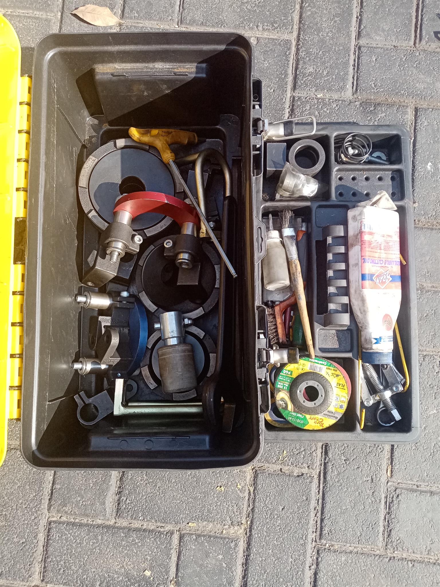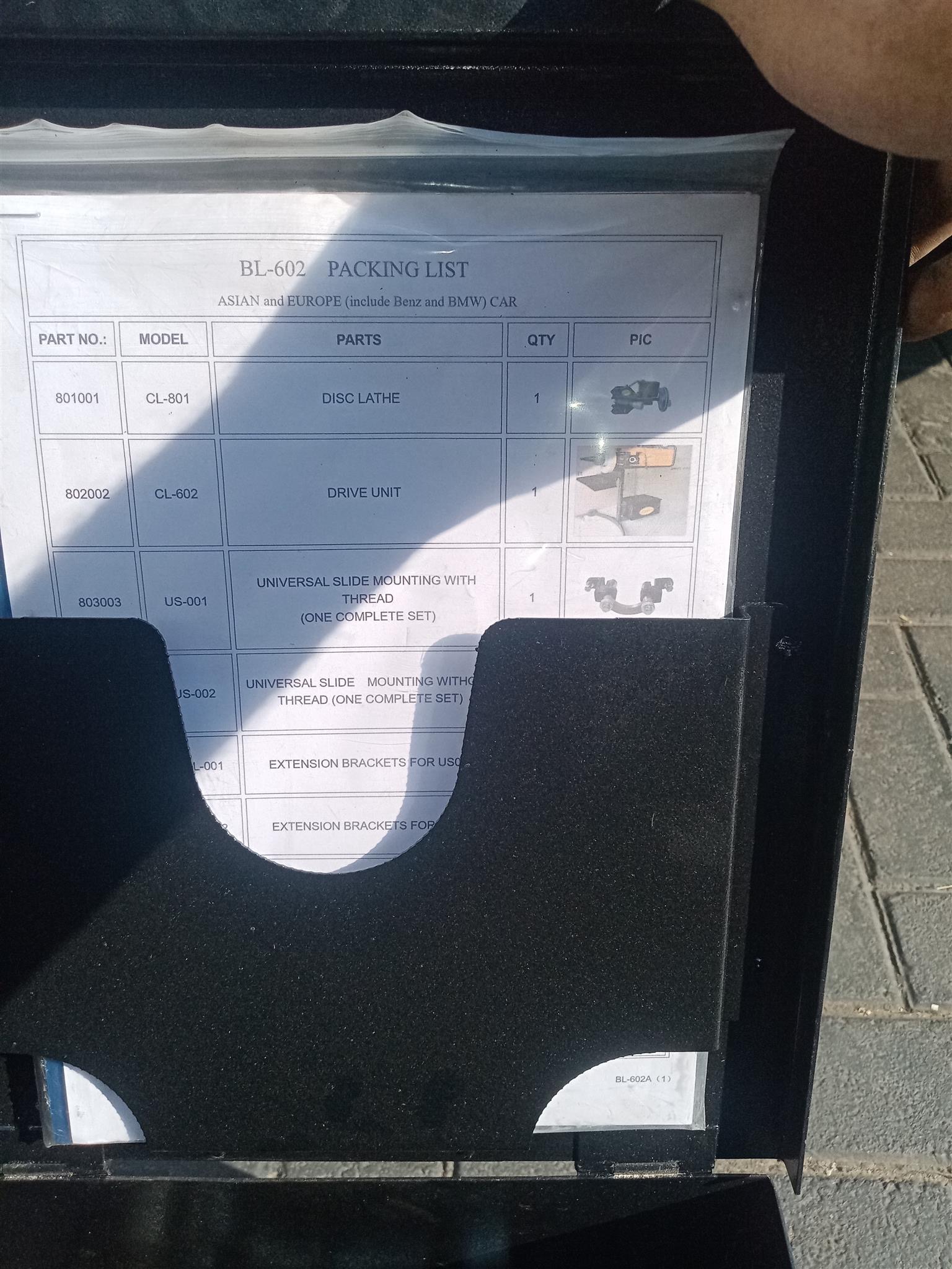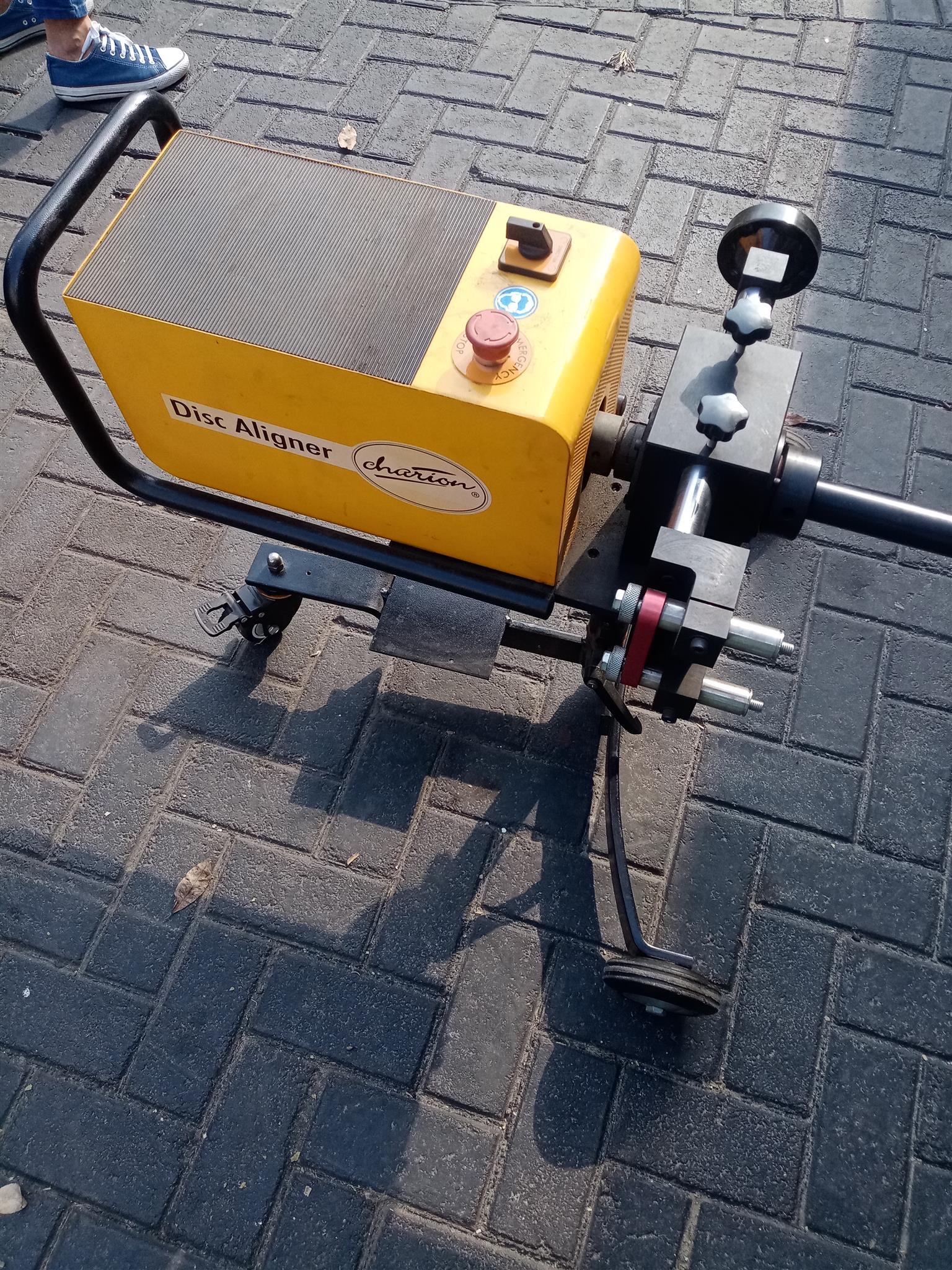 Mobile brake disk skimming machine including all accessories and toolbox with user manual. Only used 15 hr.
