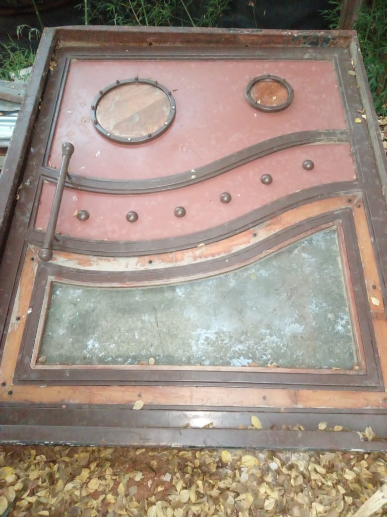 Steel pivot door. More details: