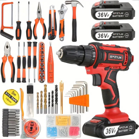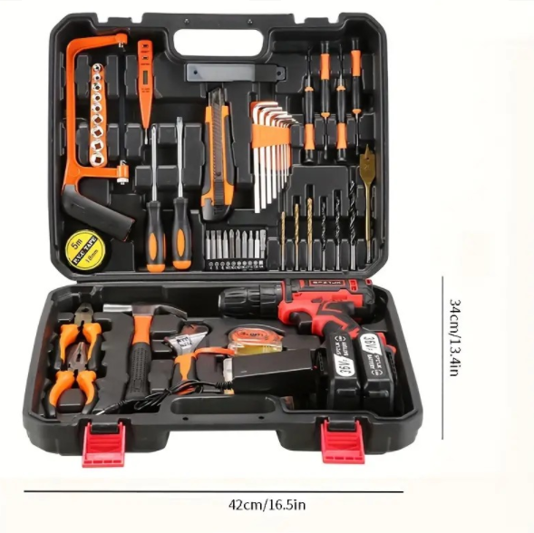 Transform your DIY projects with the 128PCS Cordless Drill Driver and Home Tool Set!