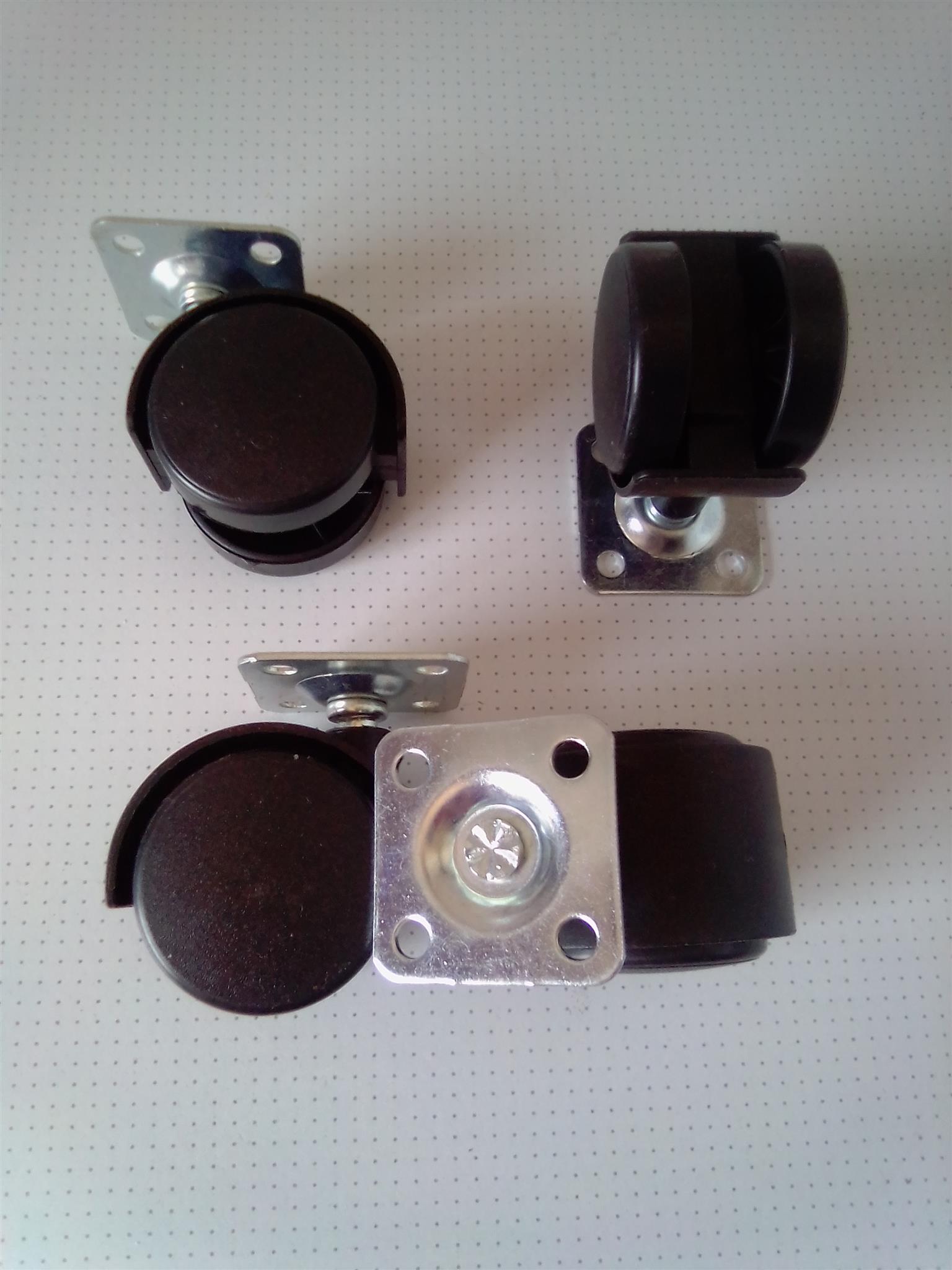 Plastic Wheels set of 4 with the stem plate. With 4 wholes for easy fitting. R80 for the set. I am in Orange Grove.