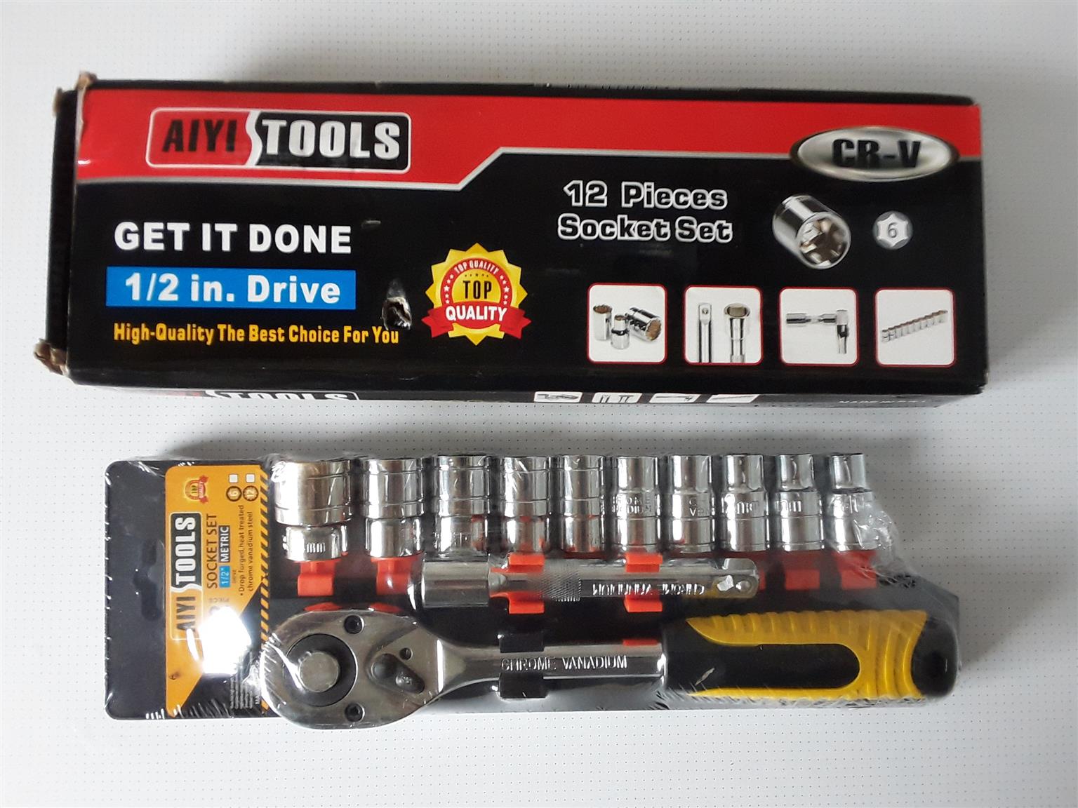 Socket Set 12 Pieces. Brand new. Sealed. Ratchet, Extension and 10 Sockets. Made from high-strength, heat treated chrome vanadium steel. Corrosion resistant chrome plated finish. Etc. I am in Orange Grove.