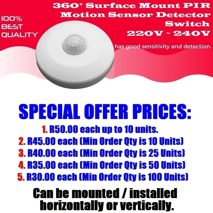 BULK OFFER FOR RETAILERS: Infrared Motion Sensor PIR 360° Detection Range, 220V.