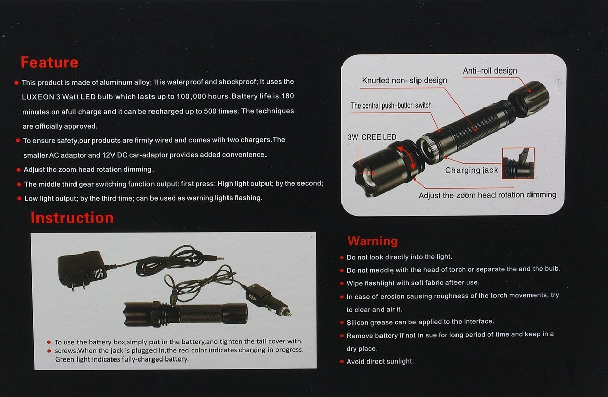 CREE LED FLASHLIGHT/TORCH. RECHARGEABLE, ZOOMABLE and PORTABLE in a handy gift box packaging.