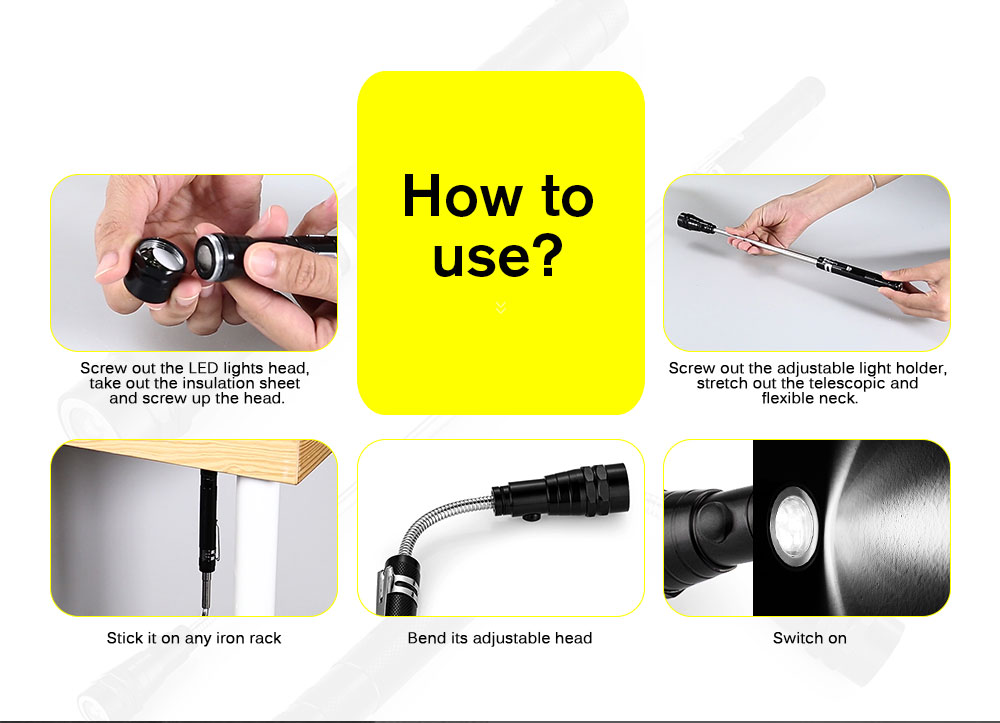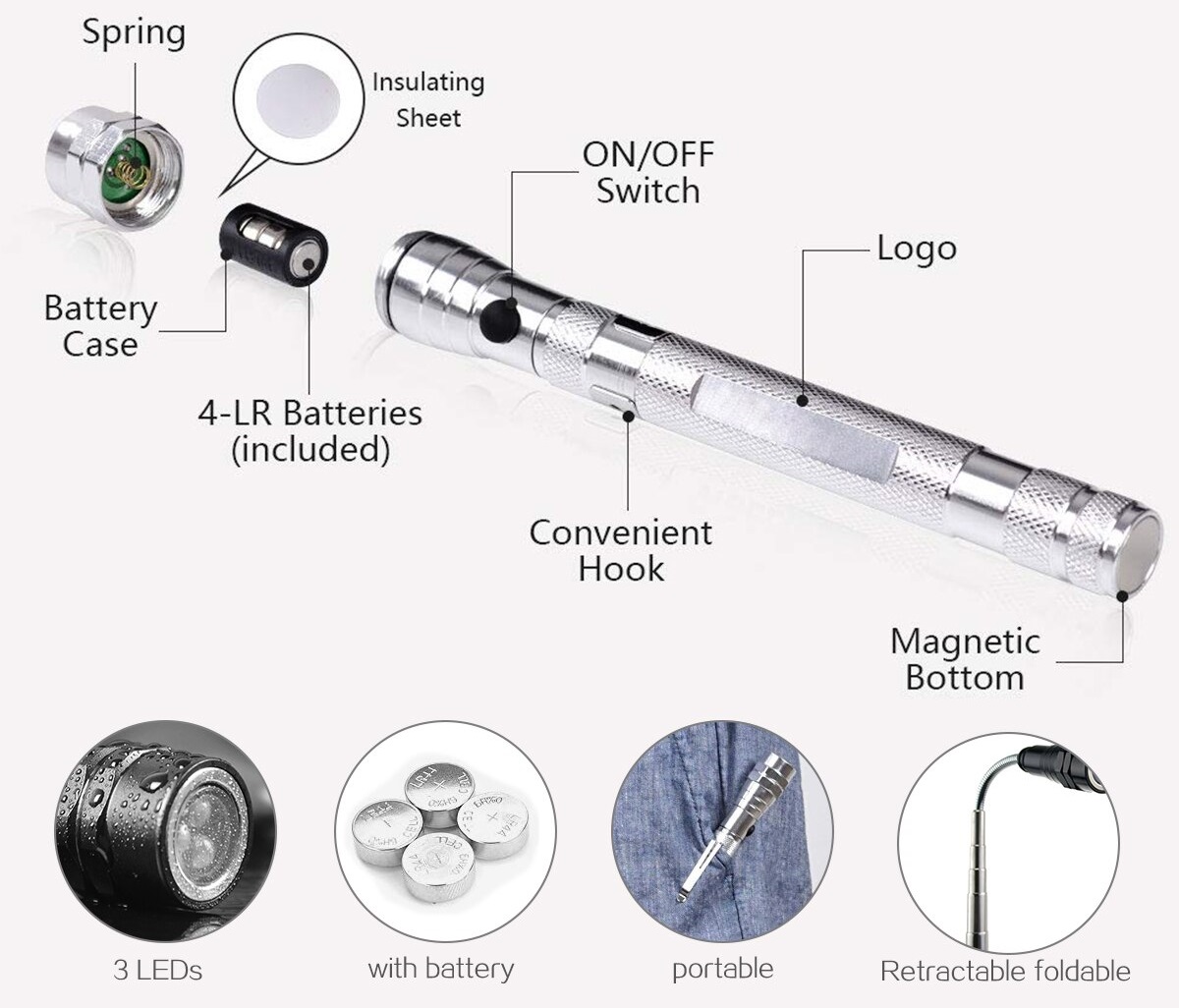 Flexi Torch 3-LED Telescopic Flexible Bendable Magnetic Pick-Up Tool Flashlight.
