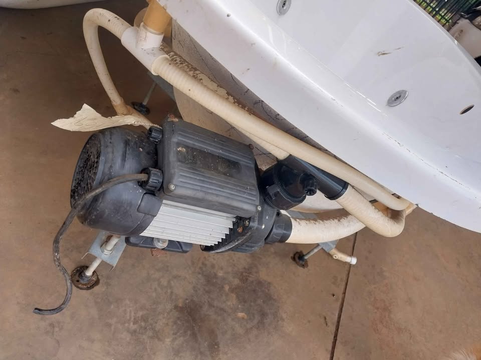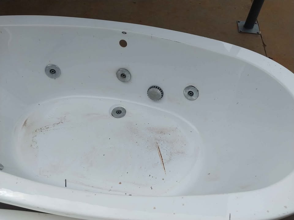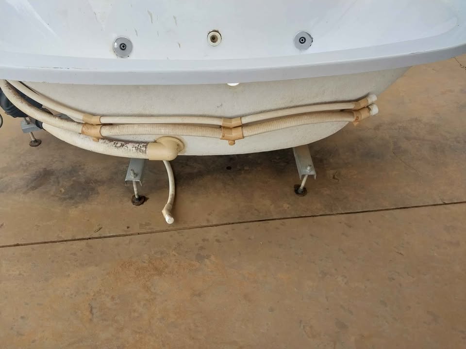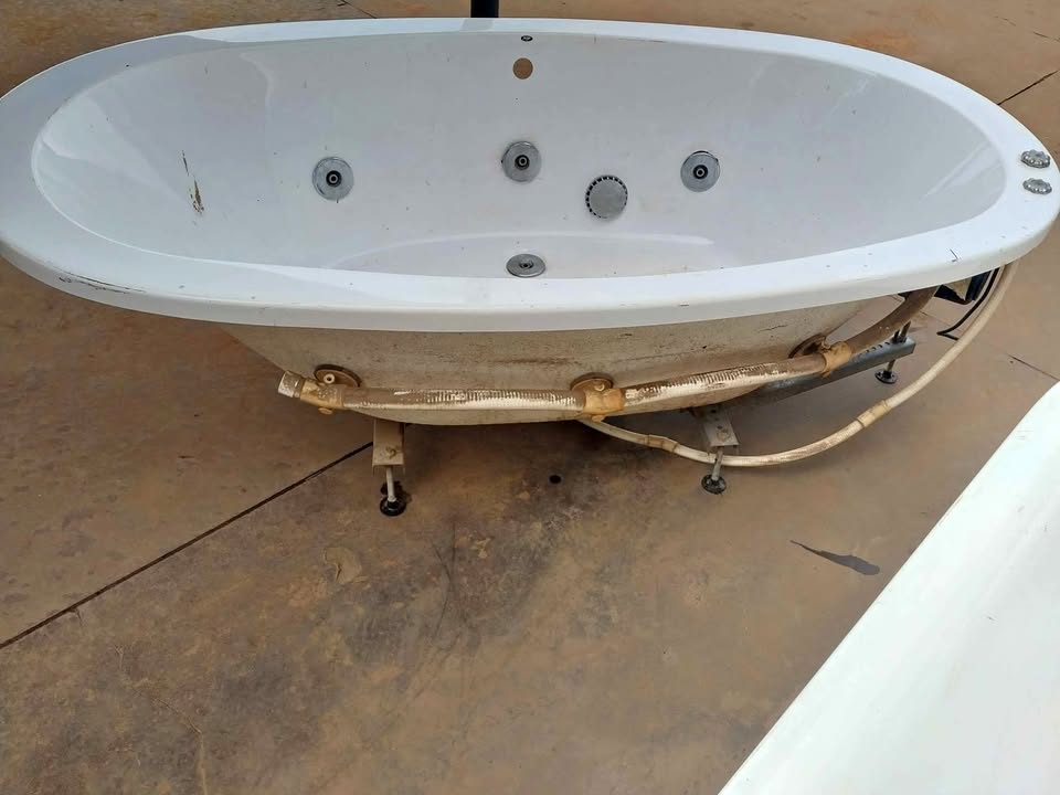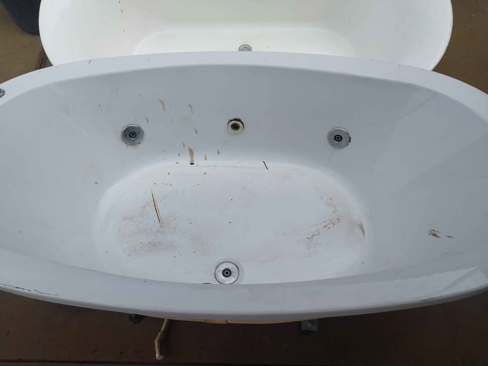 Hot tub with moter and all pipes miner scratches works perfect. 1 bath tub aswell