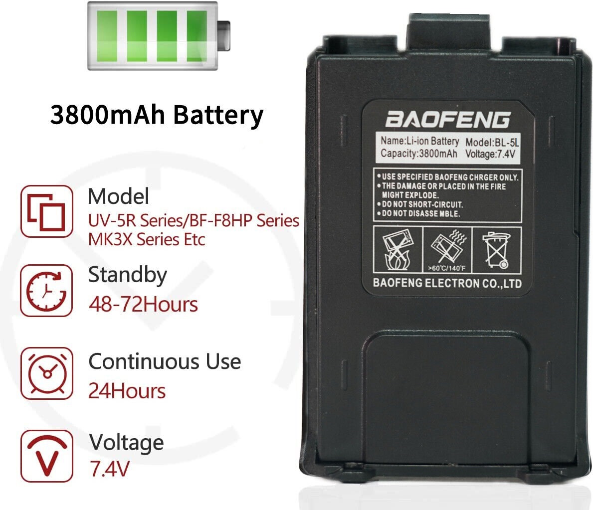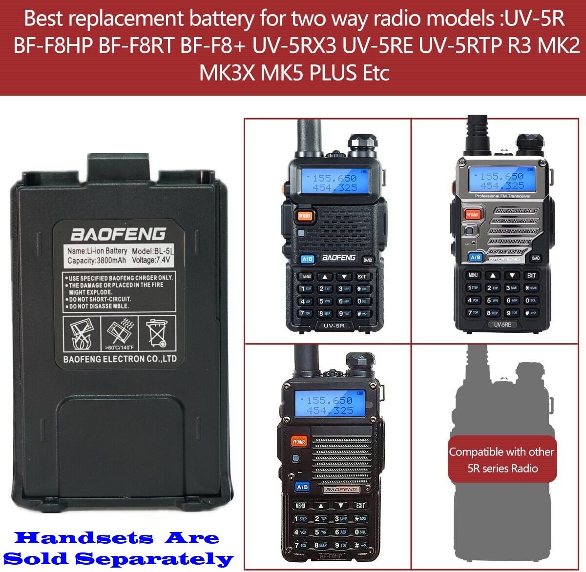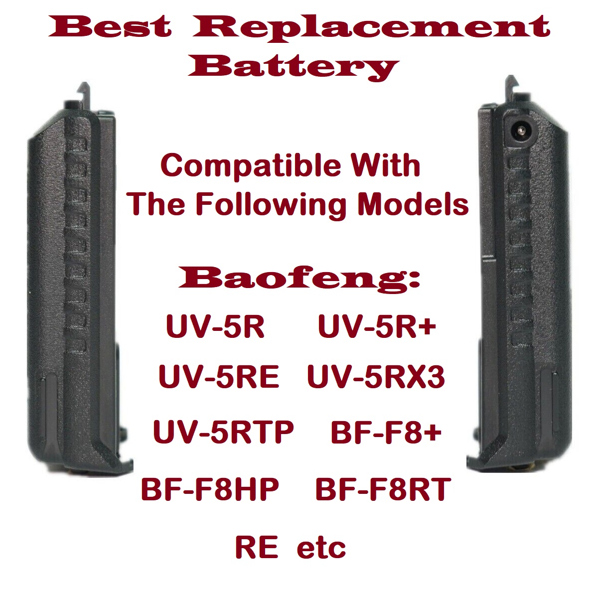 Radio Model Compatibility: Replacement Battery for the UV-5R and BF-F8 Series of BaoFeng Radios.