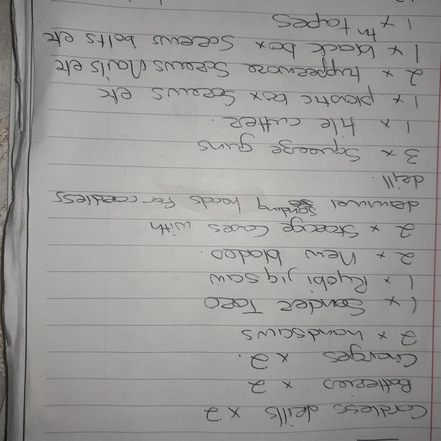 various tools, power tools and loads of extras. Must be sold together. As per the lists below everything included