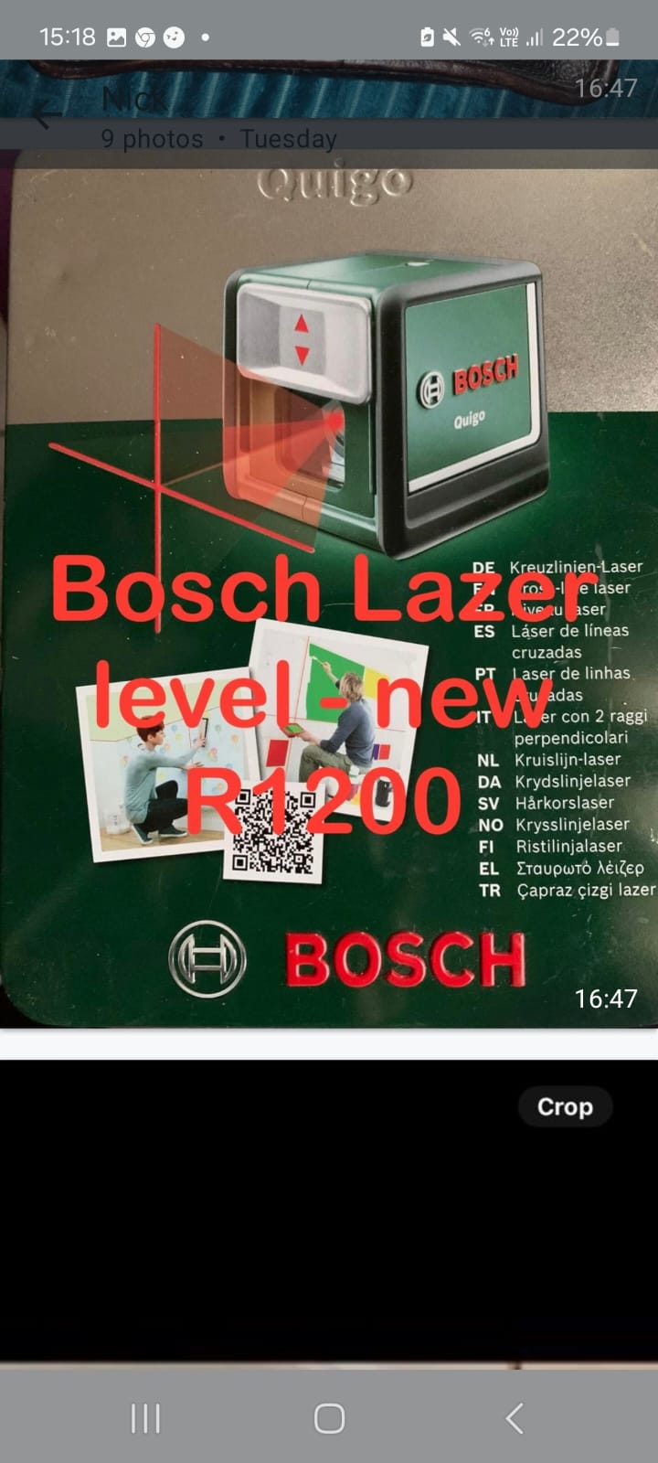 Bosch Laser Level. More details:Intention - For SalePrice - 1200.0Region - GautengCity - Krugersdorp
