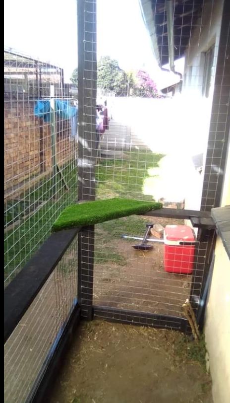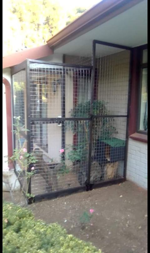 2.4meter by 1.2 meter Catios available on special. These quality units provide a safe and secure place for your cat to get outside into the fresh air and sunshine with out leaving the confines of the home. It comes with a running shelf on side and front as well as a wide shelf for a nap in the sun. Quality materials and built personally it ideal for extensions and additions to make ot a play ground for your firkid. Whats App Us on 0676398679view more for more info.