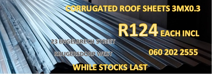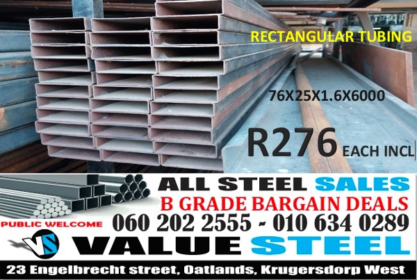 Rectangular tubing and roofing material for sale while stocks last.23 Engelbrecht Street, Oatlands, Krugersdorp West.