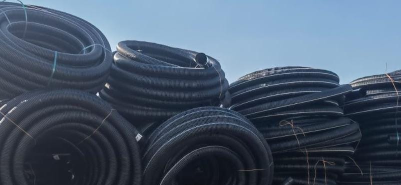 Drainex drainage pipe has an innovative double wall sandwich construction, with a corrugated outer wall and a smooth inner wall. This combines high ring stiffness with excellent flow characteristics. Rows of water in-take slots are symmetrically arranged around the apex of the pipe (240˚- 270˚) with a flow channel at the bottom (120˚- 90˚). The high infiltration area combined with thin inner wall structure ensures optimum water intake. The slots are protected in the valleys of the corrugated structure which reduces the possibility of blockage. The smooth core with an extremely low roughness coefficient results in greater flow rates, allowing the utilisation of smaller diameter pipes. Drainex is manufactured in coils and lengths to the highest quality standards and are joined by push fit couplings.
