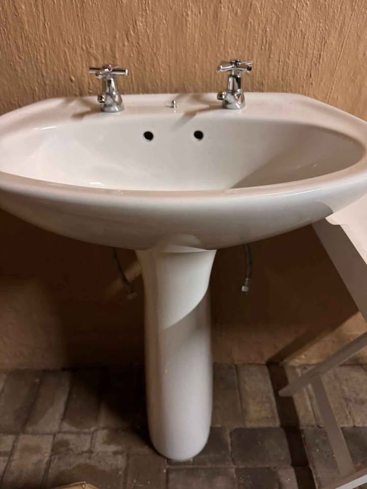 Used but still in good condition Basin Pedestal 2 x Taps 2 x Braided hoses