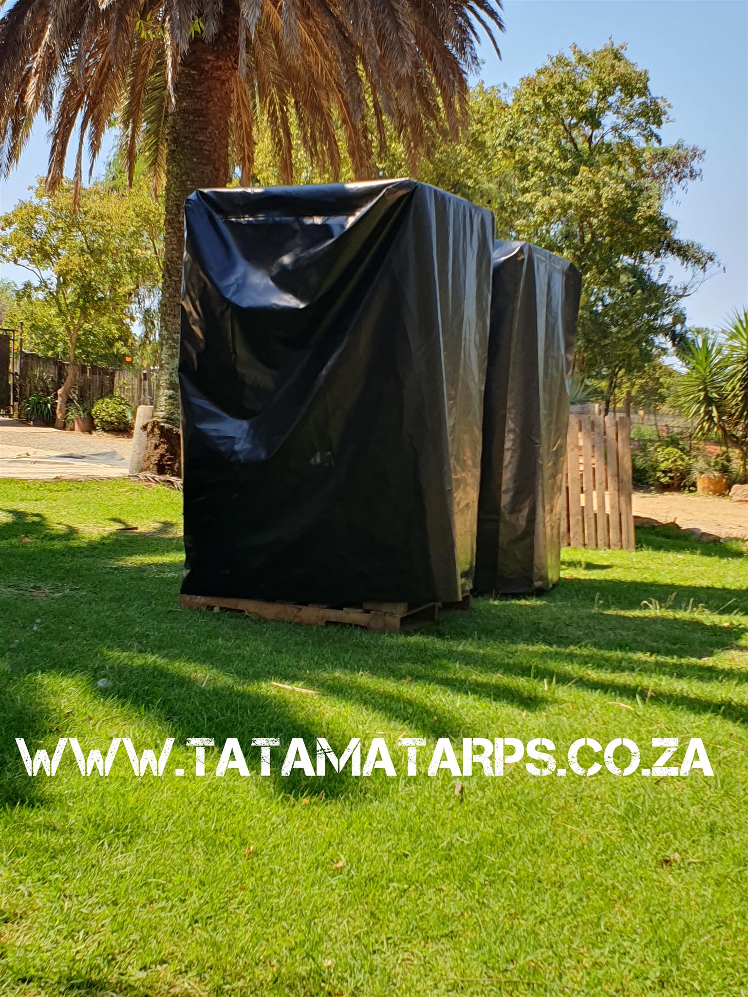 Pallet covers are a re-usable goods wrap protecting the product from rain, dust and losses on route. Common applications are for transporting bricks, cement, sweets and other edible products. These are made from durable 550g or 700g PVC tarpaulin material. Sizes are made to fit a standard South African pallet size of 1.2m x 1.0m and of various heights according to customers specifications. Other pallet sizes can be made on request.