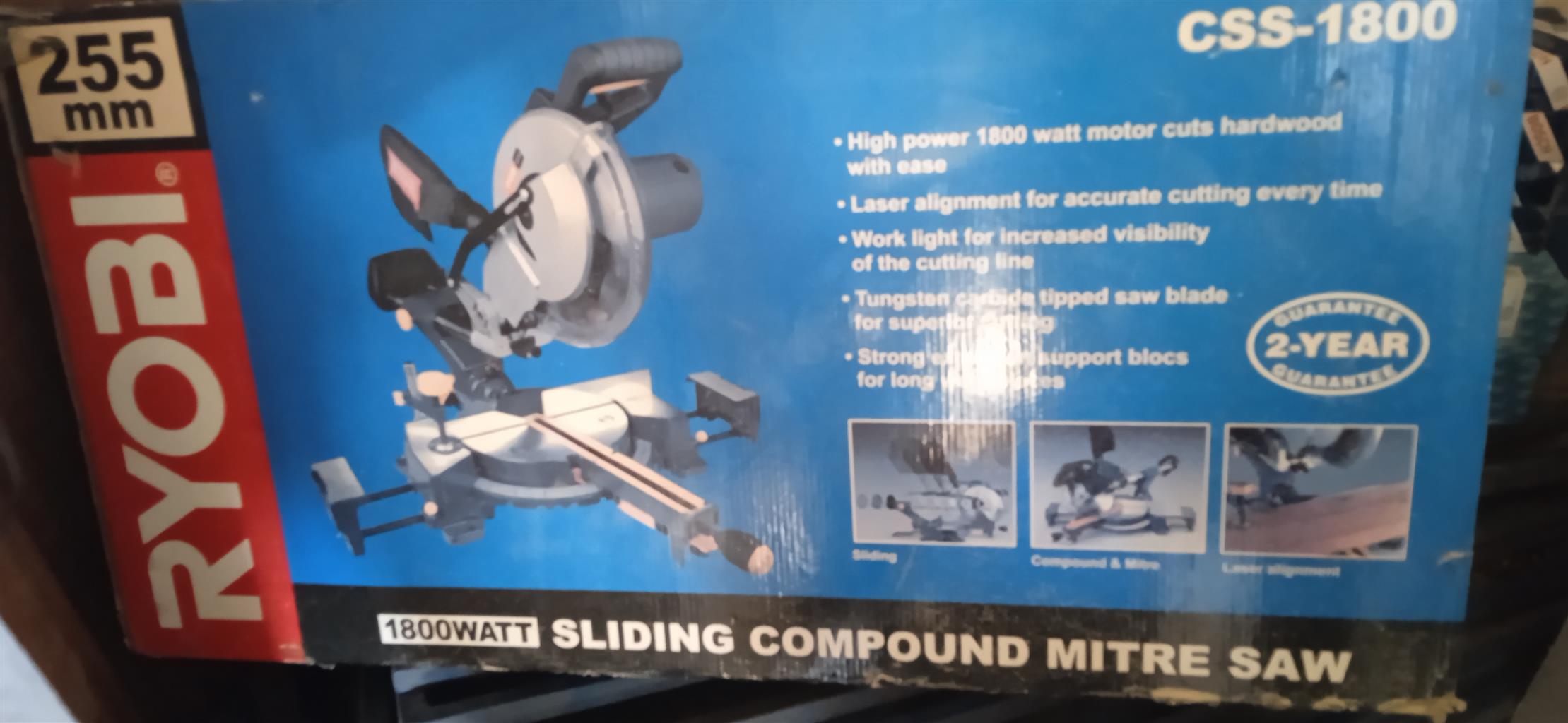 RYOBI 1800Watt Sliding Compound Mitre Saw.Good as new, need to sell = relocating.