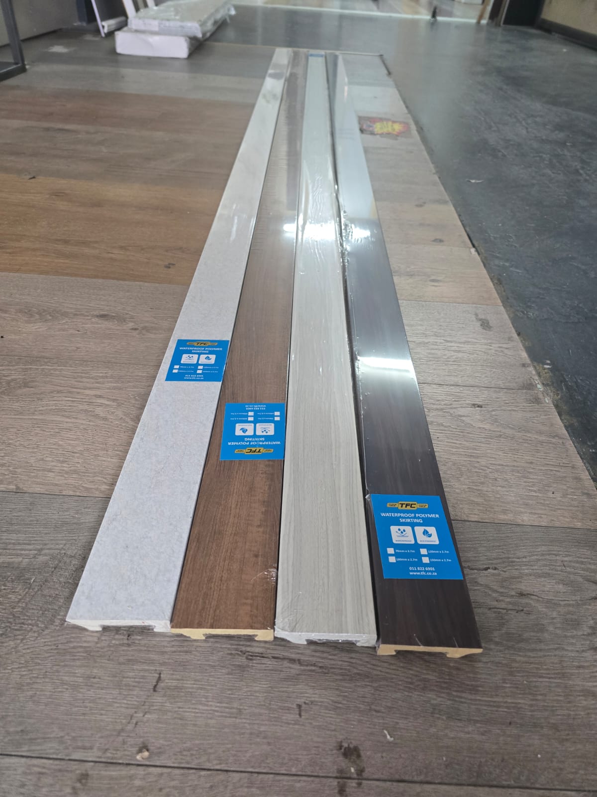 Waterproof & Termite resistant skirtings - 4 colours available. 70mm high and 2.7m long. Was R175 now R99