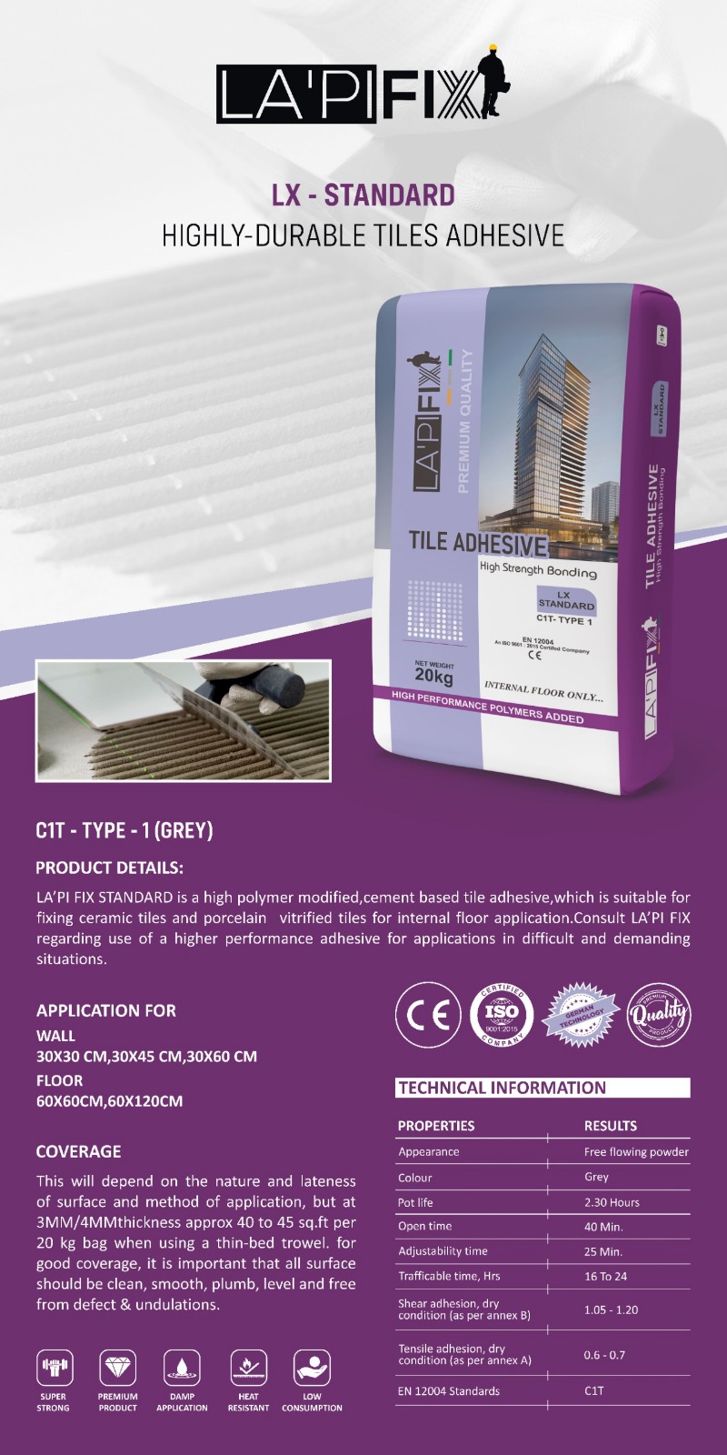 This is a high polymer-modified adhesive with enhanced properties that makes it suitable