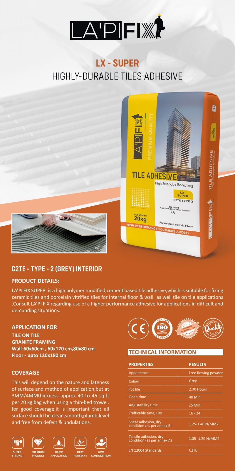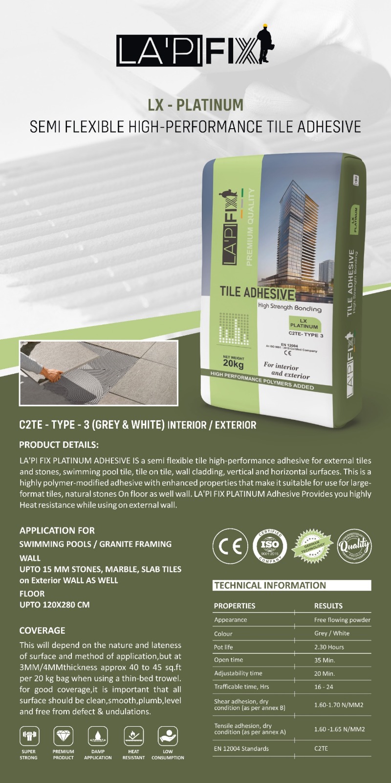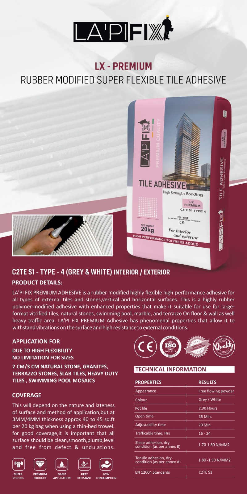 Semi flexible tile high-performance adhesives for external and internal tiles.
