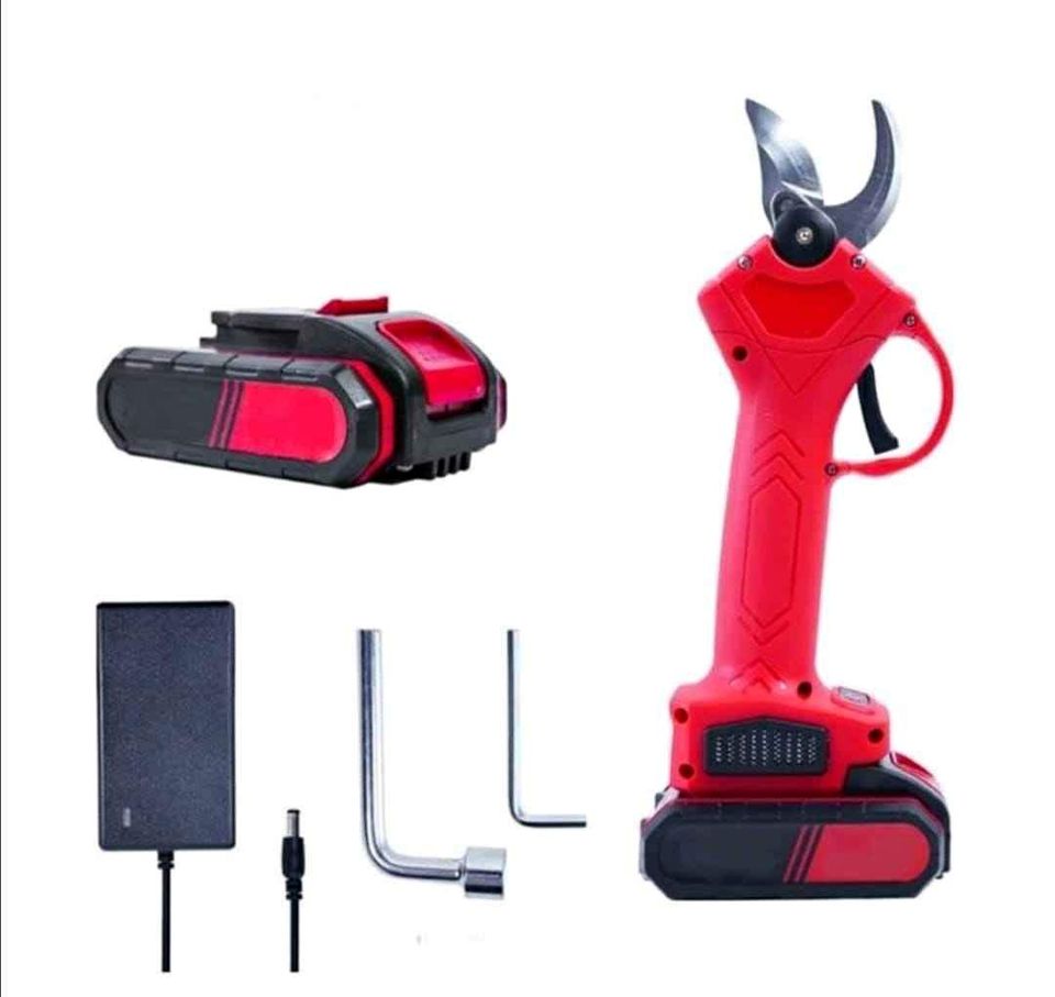 Lithium scissors Comes with 1 x 24 volt battery 💫R1250💫 This product is a battery-driven electric pruning shear, that comprises a fixed blade, a movable blade, a lithium battery, a battery charger, and other components. -It is designed for cutting orchards, vineyards, etc. -It is easy to operate, and it also has 8-10 times the efficiency of traditional manual pruners. Pruning quality is significantly higher as compared to manual pruners Features -Movable Blade -Fixed blade -Latch pin -Trigger -Power switch -Electric pruning shears power input connector -LED Light indicator -Charger AC Plug -Charger output plug -Release button -Battery input connector -Battery output connector Specifications; -Voltage: 24V -Package weight: 2000g -Package dimensions: l=32cm x h=24cm x w=8cm What's in the box 1 X Professional Rechargeable Lithium Pruning Shears ⏰R70 to locker ⏰R110 to door 🚚7-14 🚨