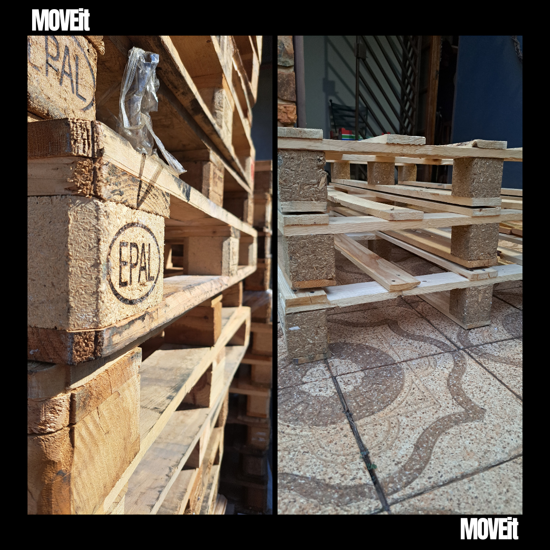 Looking for strong, reliable second-hand pallets? We’ve got you covered! MOVEit sells a variety of high-quality, pre-owned wooden pallets in different sizes, including 2-way and 4-way options. Standard size: 120x79x15 (LxWxH). Perfect for storage, shipping, and endless creative DIY projects!