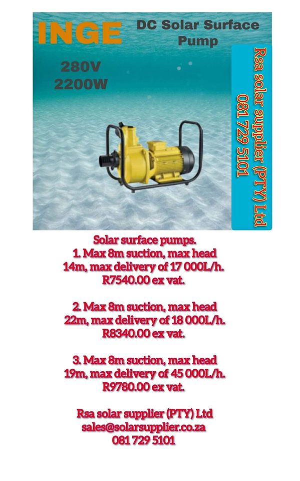Solar surface pumps. Rsa solar supplier (PTY) Ltd