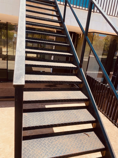Good condition steel vas trap steps 2 sets . Ist set 1,1m wide x 21 steps plus a landing. 2nd set 15 step plus a landing. Needs sanding and a re paint