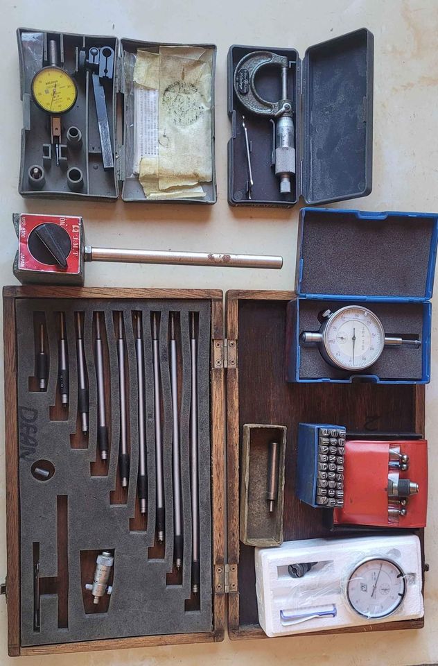 Quality brands of engineering equipment used for workshop.7 x Dial Indicators, Mitutoyo Inside Micrometer set, and many more items. Still in excellent condition