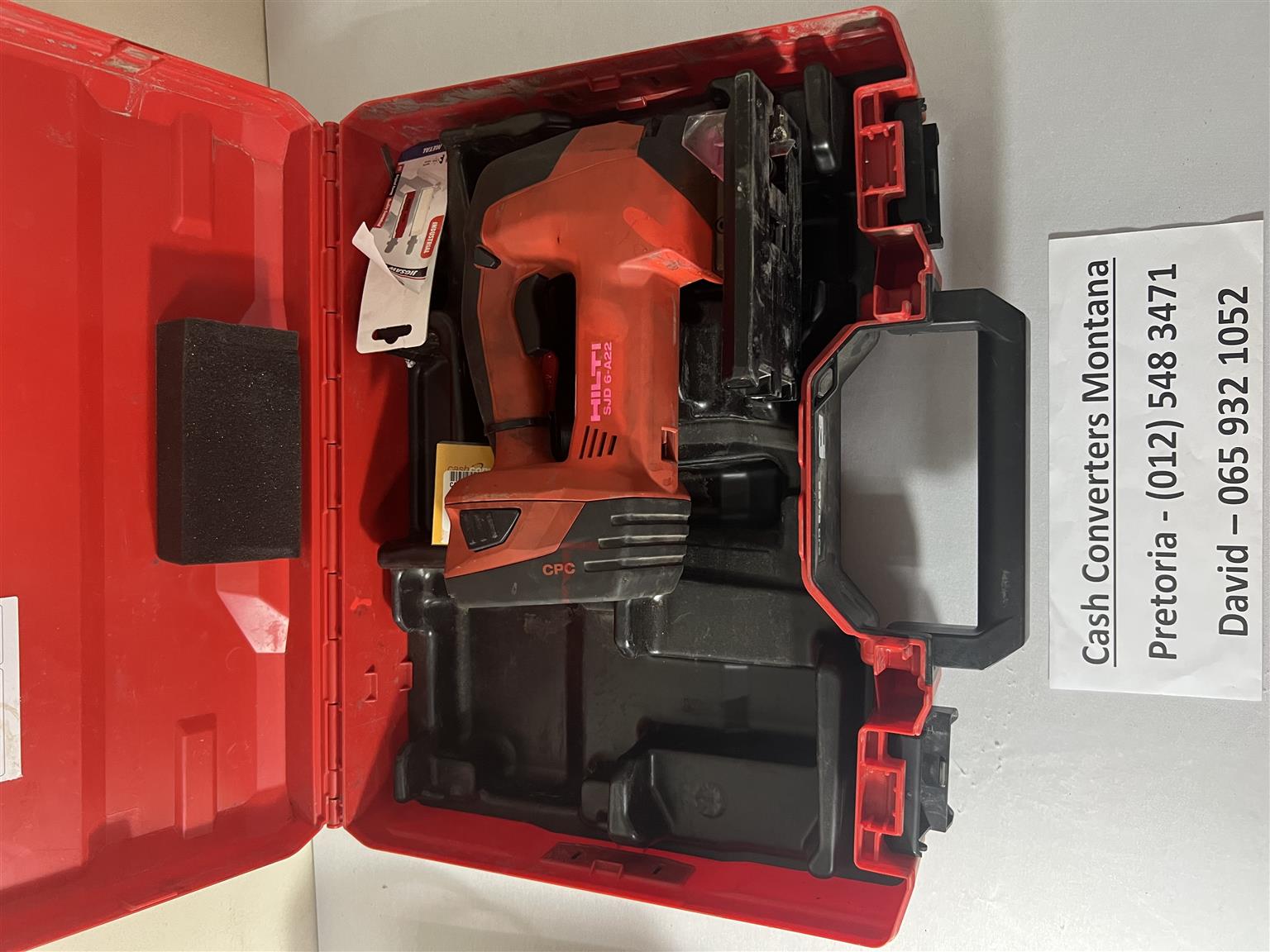 Hilti Jigsaw SJD 6-A22 Cordless for sale R9999.00. In a working condition backed by a six month guarantee. Comes in a case. Black and red in colour. Reference : CAMNT008165