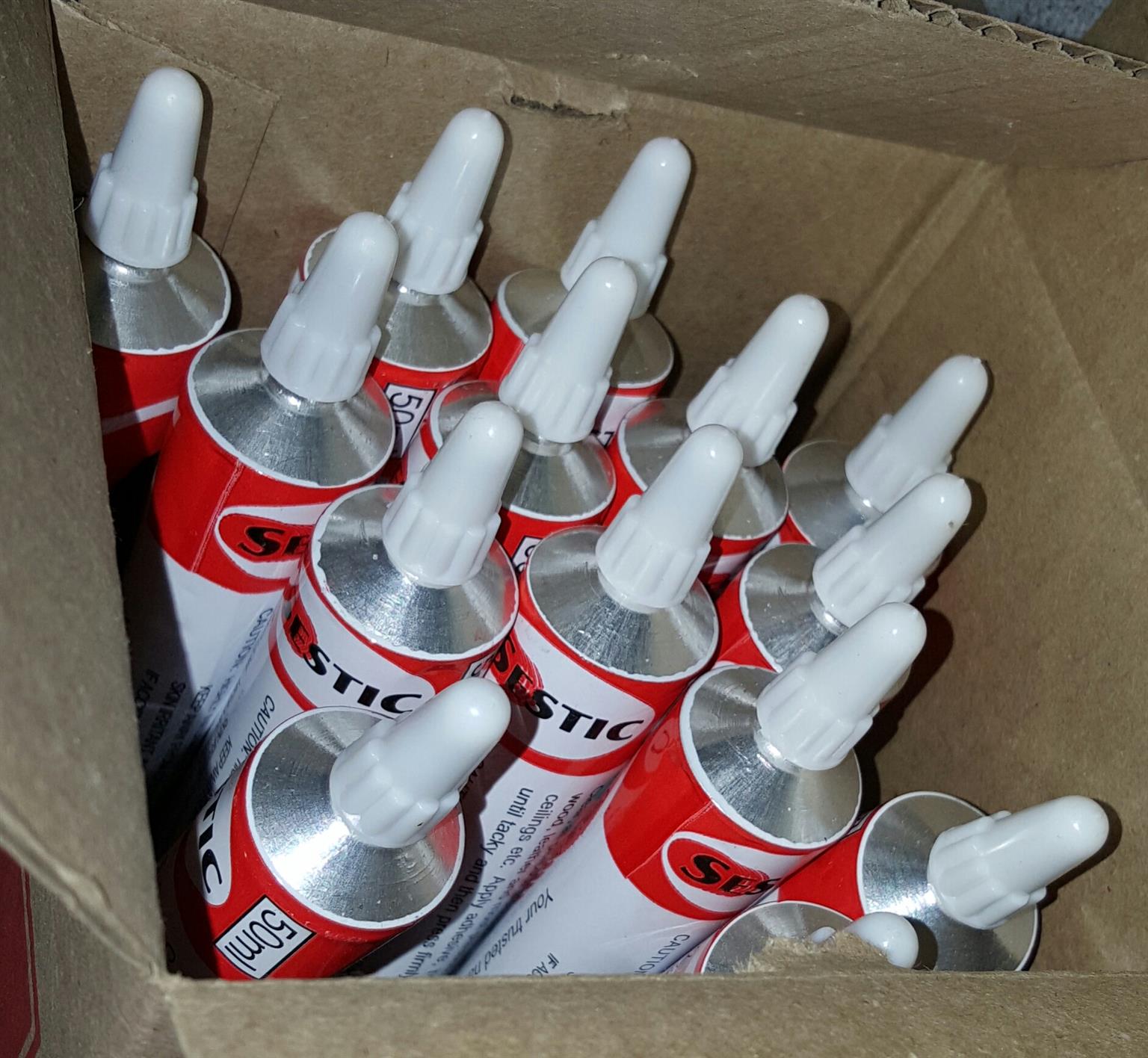 50ml all purpose glue. New fresh R19 each or box of 20x R319. Bonds china, pottery, glass, wood, leather, most plastics, art & school projects. Ideal for sticking alarm & intercom wires to walls & ceilings as clear and resists yellowing. Sestic brand. Sticky stuff. Save up to R30 per tube for quality glue.