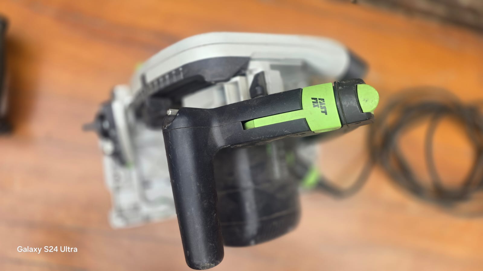 The Festool TS 55 FEBQ-PLUS plunge-cut saw is a corded track saw known for its speed, precision, and durability. It is a powerful tool with a 1200W motor and features a unique, thin-kerf blade design that allows for faster and cleaner cuts than previous versions.