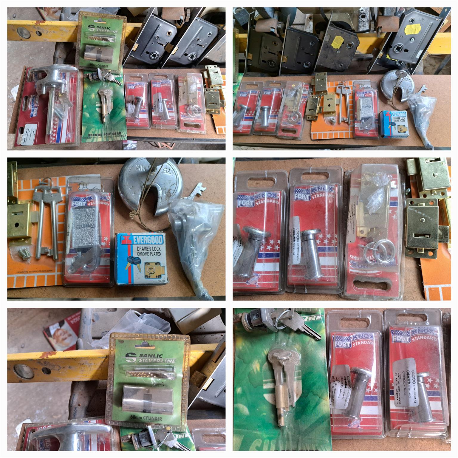A SELECTION OF NEW LOCKS AND KEYS, AS WELL AS A NUMBER OF BLANK KEYS