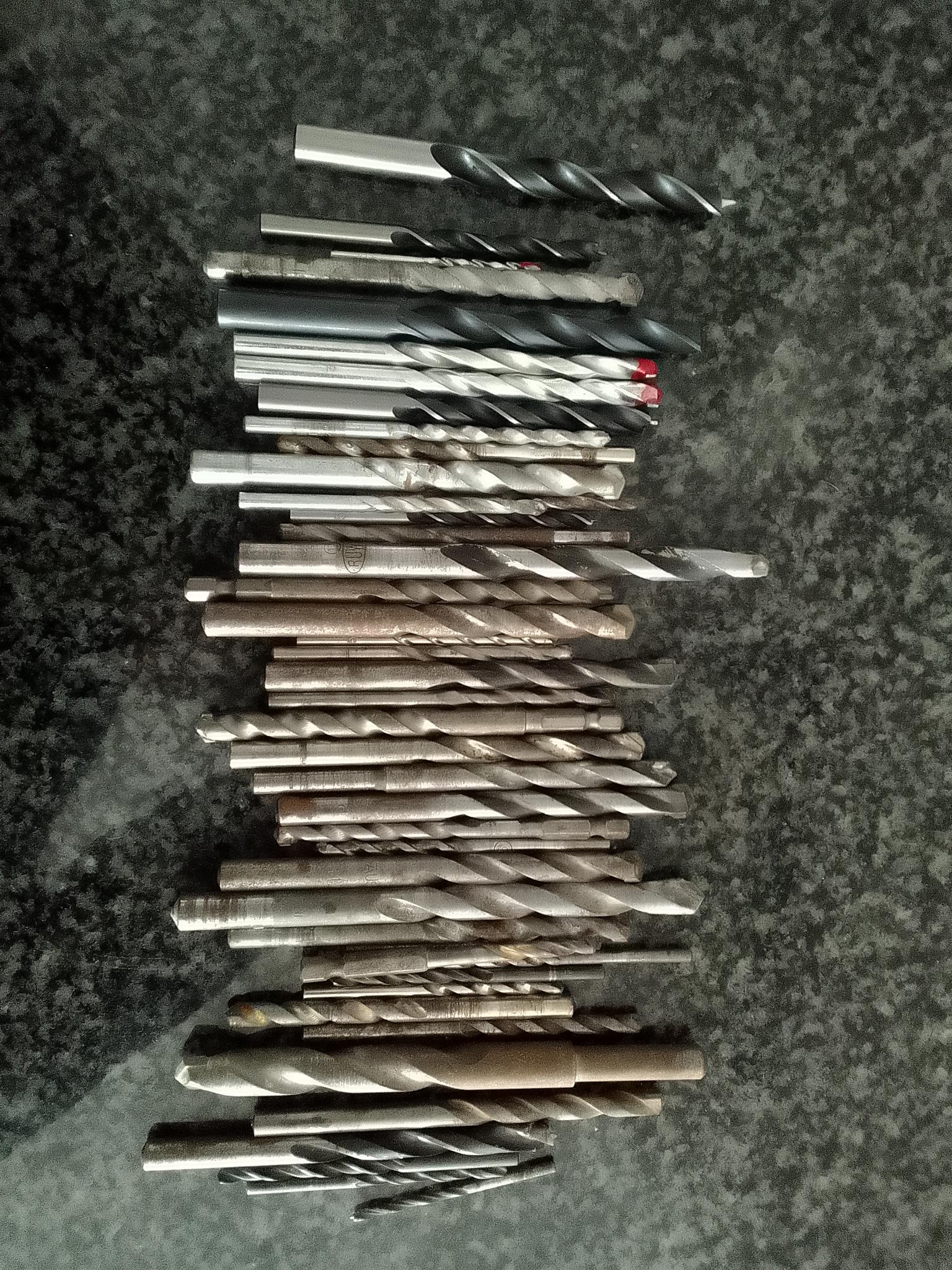 44 drill bits some used some new mix between wood steel and concrete drill bits