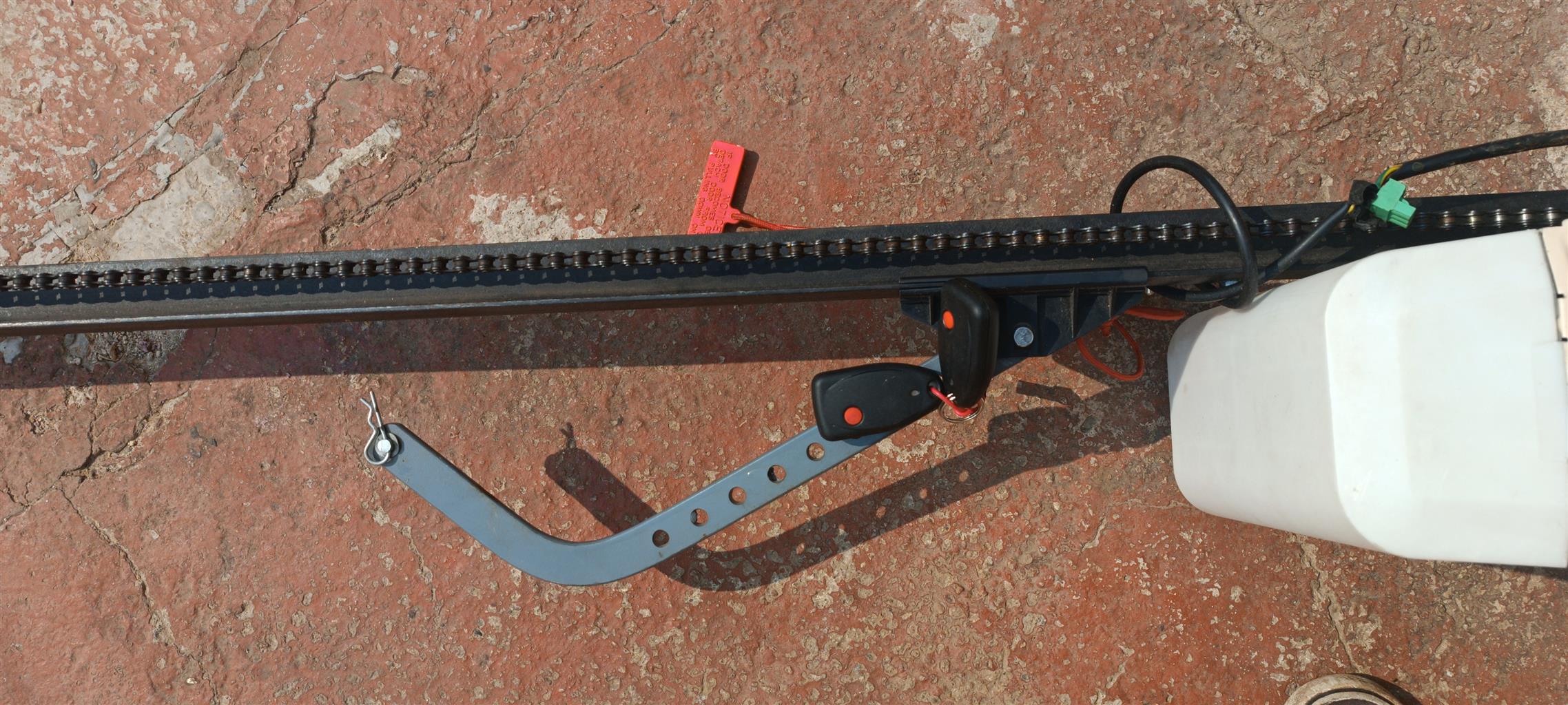 2nd hand garage door motor with 2 remotes and receiver with the track and chain