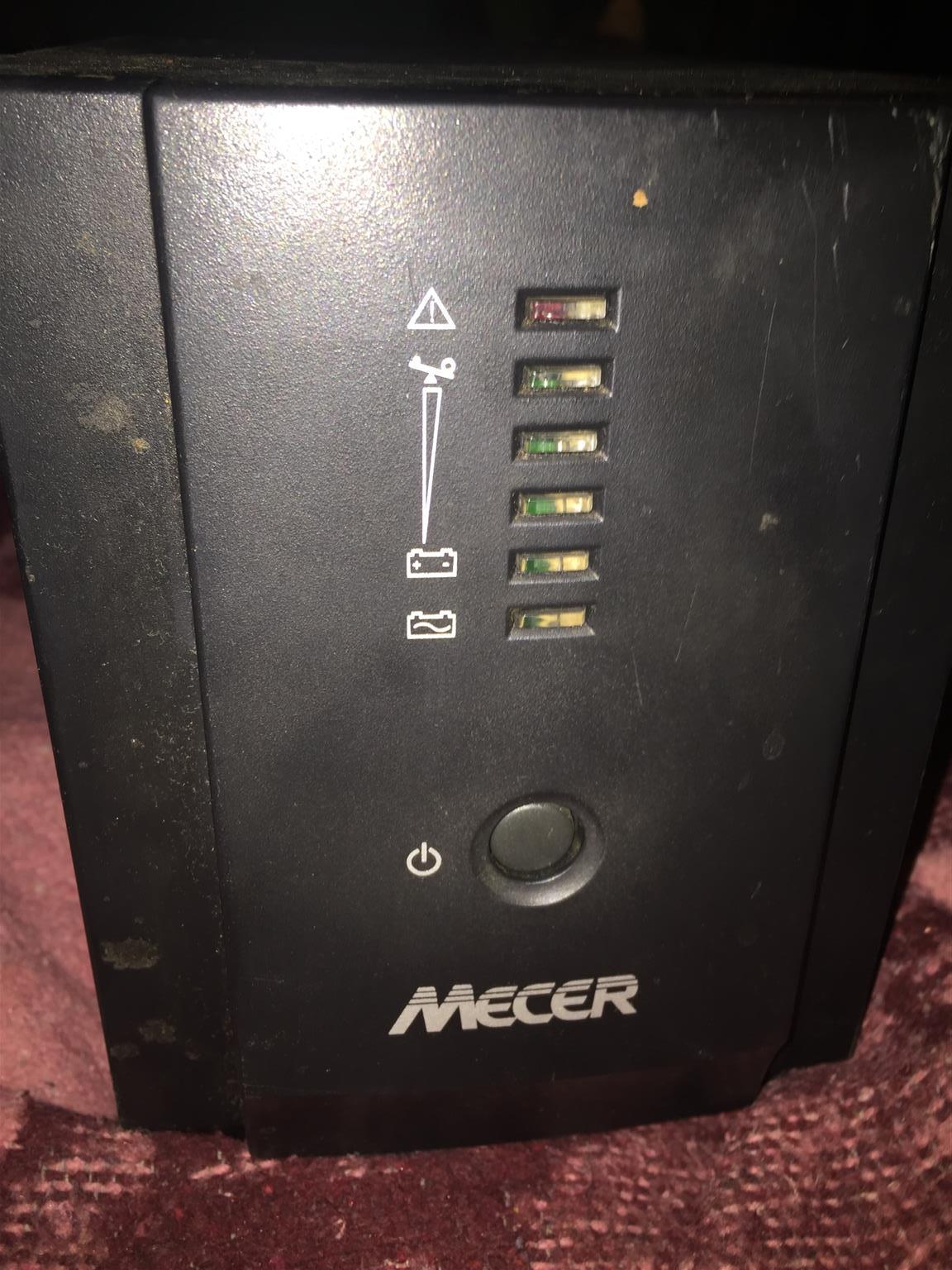 Mecer UPS it still has a battery, good for using when there’s loadshadding to charge phones, laptops and for lights