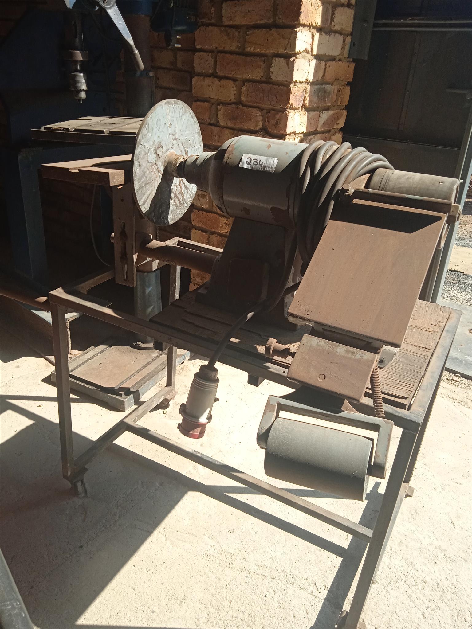 Disk belt sander for sale. 380 volt, disk belt rubber is loose. Selling at R4500. Please contact us for more information.