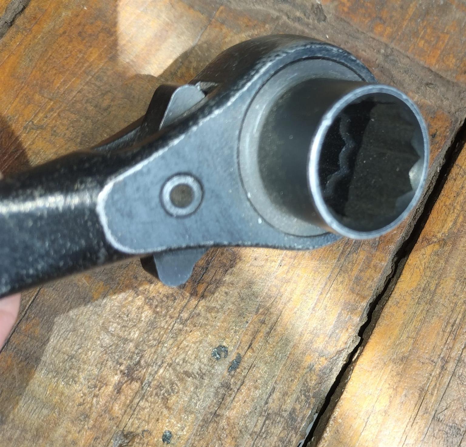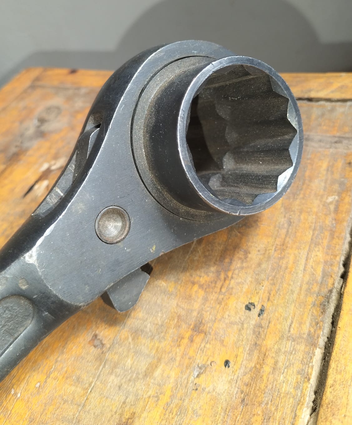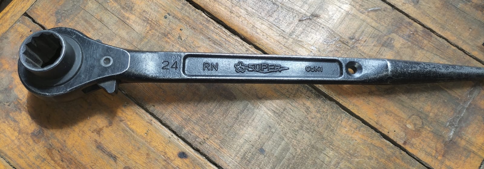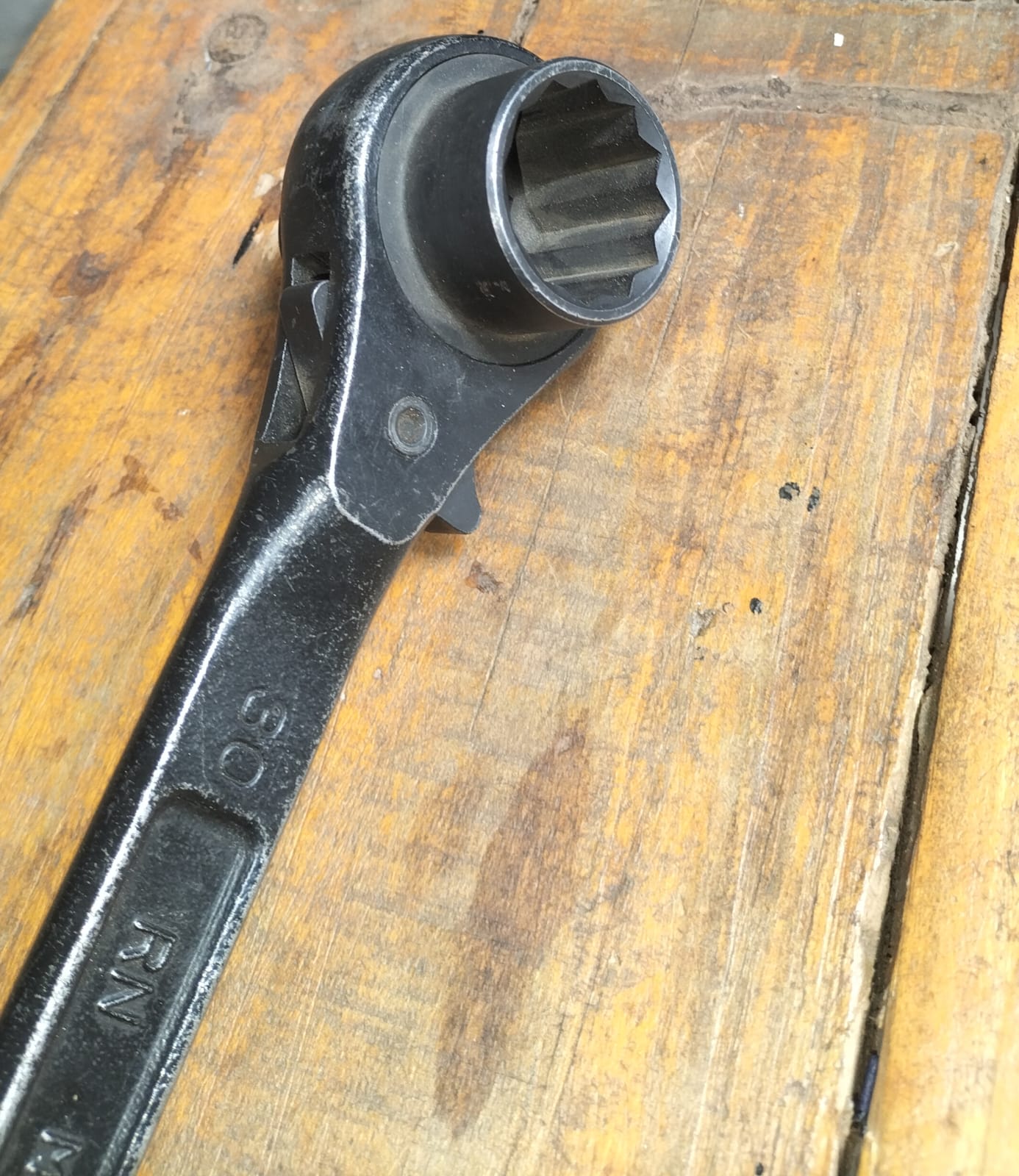 Each wrench has two sizes and a "podger" handle used for aligning bolt holes in structural steelwork.