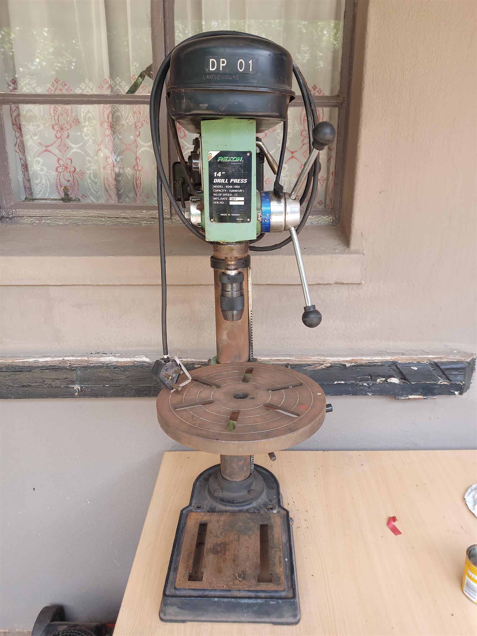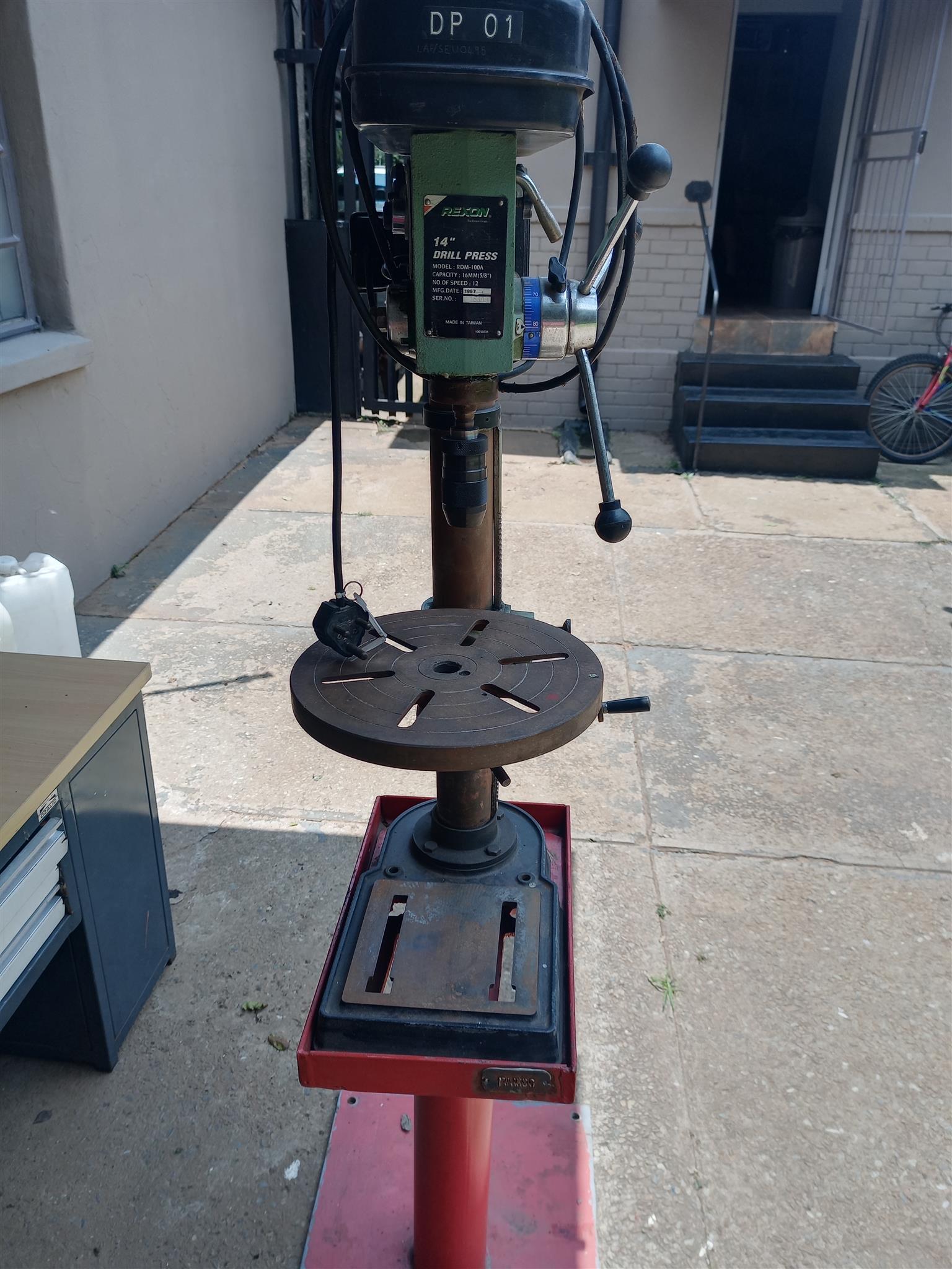 Used good working press drill with 4 speed new keyless chuck and arbor 220 volts with stand