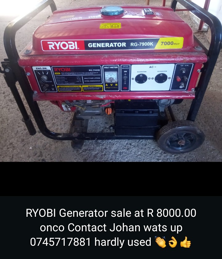 RYOBI Generator 7000kw for only R8000.00. More details: