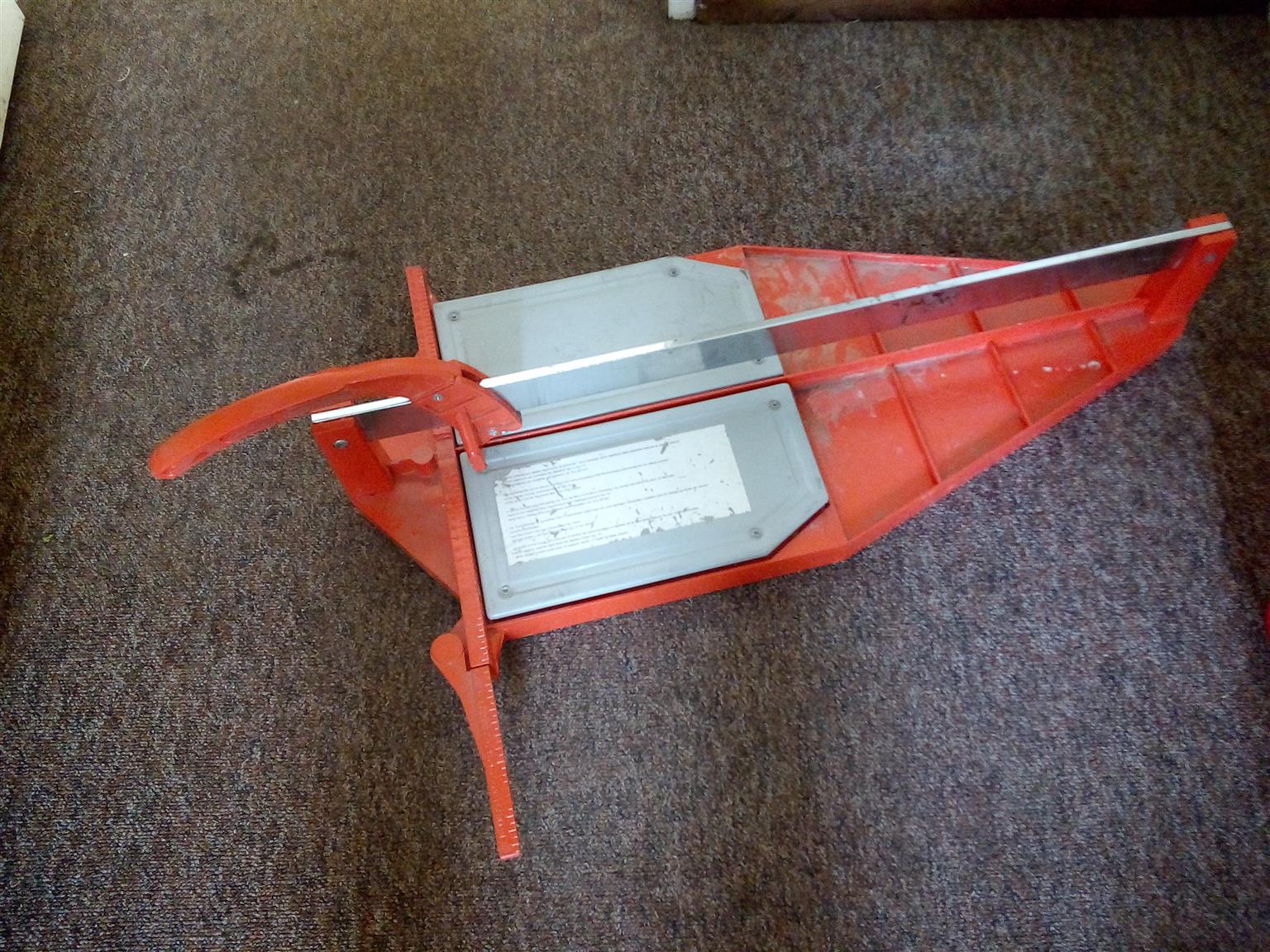 MAC: The tile cutter has a cutting thickness of 14 mm, mitre angle cut of 0-45 degrees, supporting arm length of 300 mm, supporting arms count of 2 pcs, and handle length of 132 mm 1. The maximum cutting length of the tile cutter is 600 mm. Like new