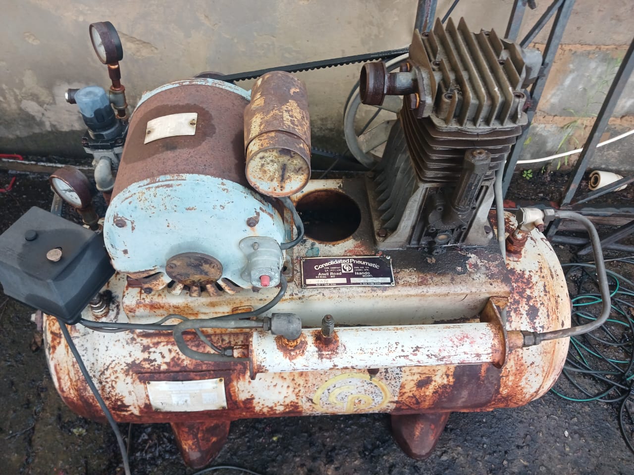 Well built air compressor. 100 litre capacity with 2x connections/couplings for spray painting