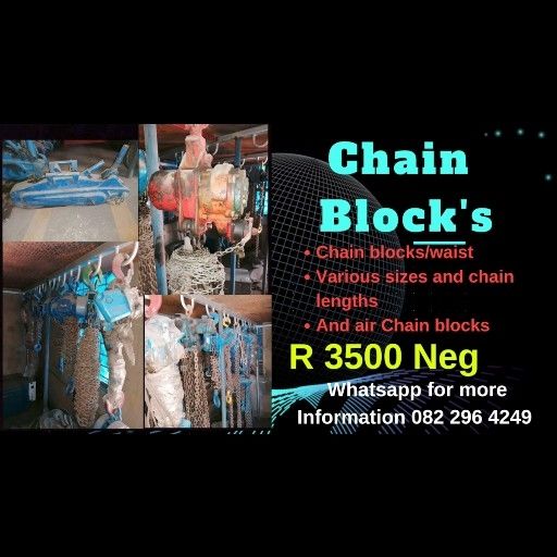 Chain blocks/waistVarious sizes and chainlengthsAnd air Chain blocksR 3500 NegWhatsapp for moreInformation 0822964249view more