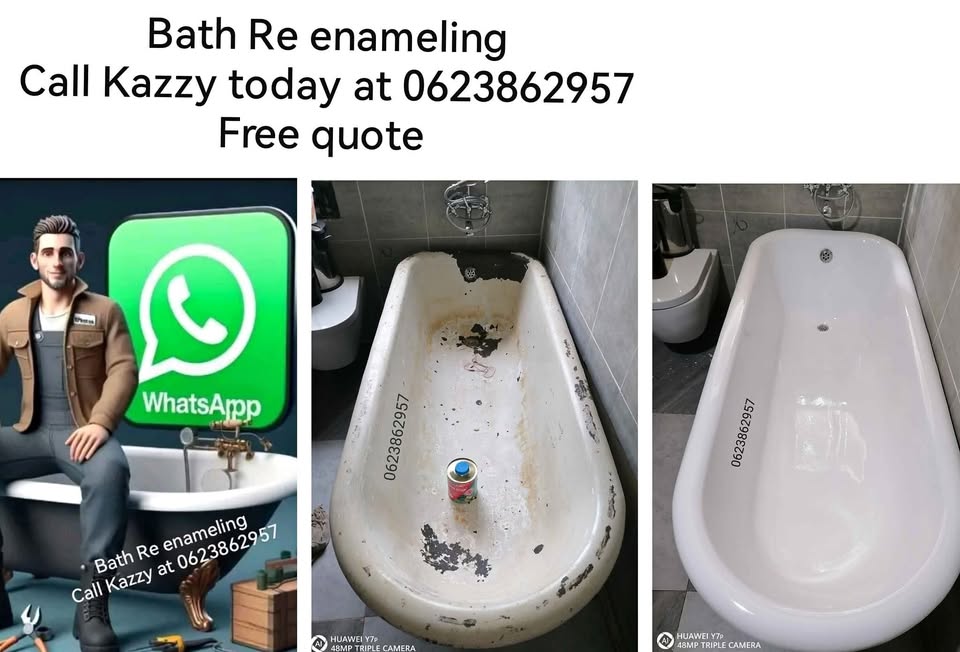 🔥🔥🔥🔥🔥🔥🔥🔥🔥 Hi we re enamel all types types of bath set. We also change the colors. All damages will be fixed. We have references and high quality of work. Call Kazzy today at Free quote 🔥🔥🔥