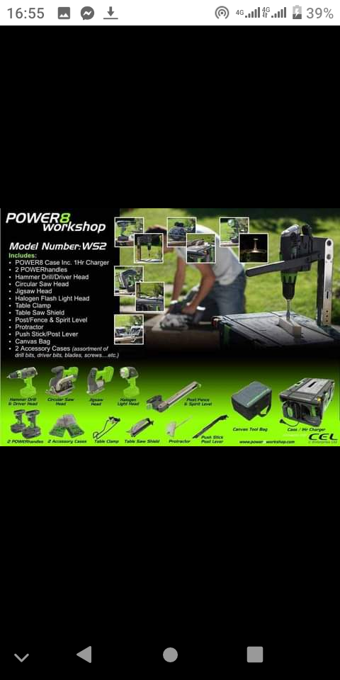 8 power tools in 1 kit. Neat, organized, portable and always available. Work anywhere, any time even in power interruptions and loadshedding. Everything you need in one awesome kit. This is a must have for every wood working enthusiast. Now on a never to be repeated special. Contact for more details.