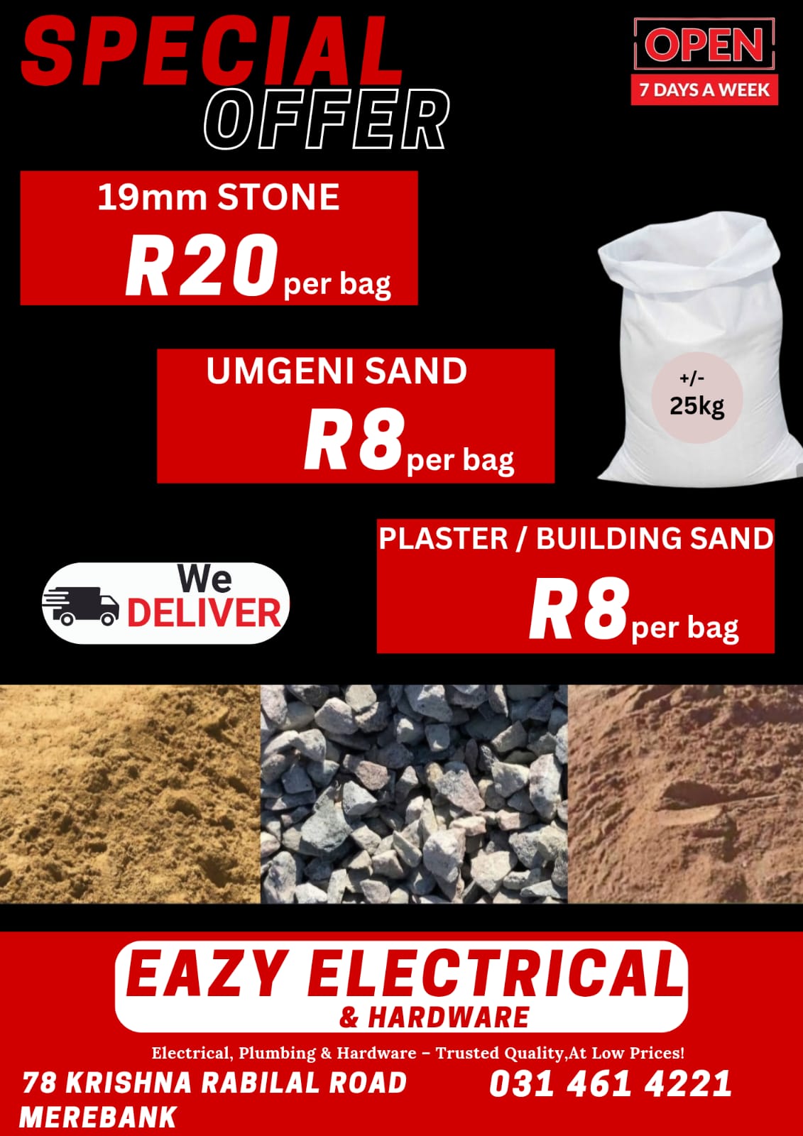 Building material. More details:Intention - For SalePrice - 8.0Region - KwaZulu-NatalCity and Suburb - 78 Krishna Rabilal roadMerebank
