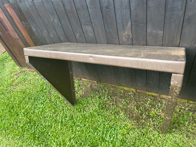 Steel wall mounted work bench, bolts to the wall