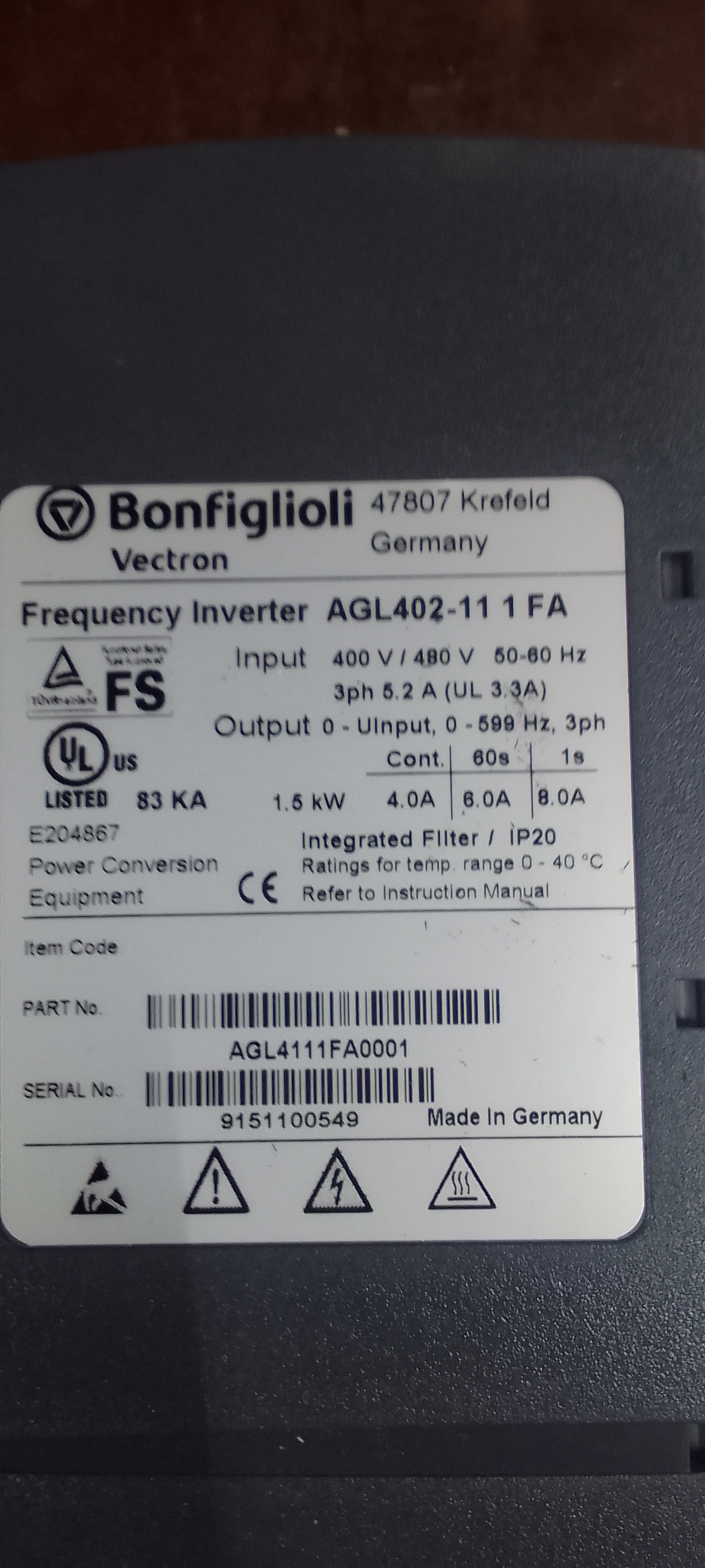 X2 bonfiglioli VFD drives R3000 each or R5000 for the pair