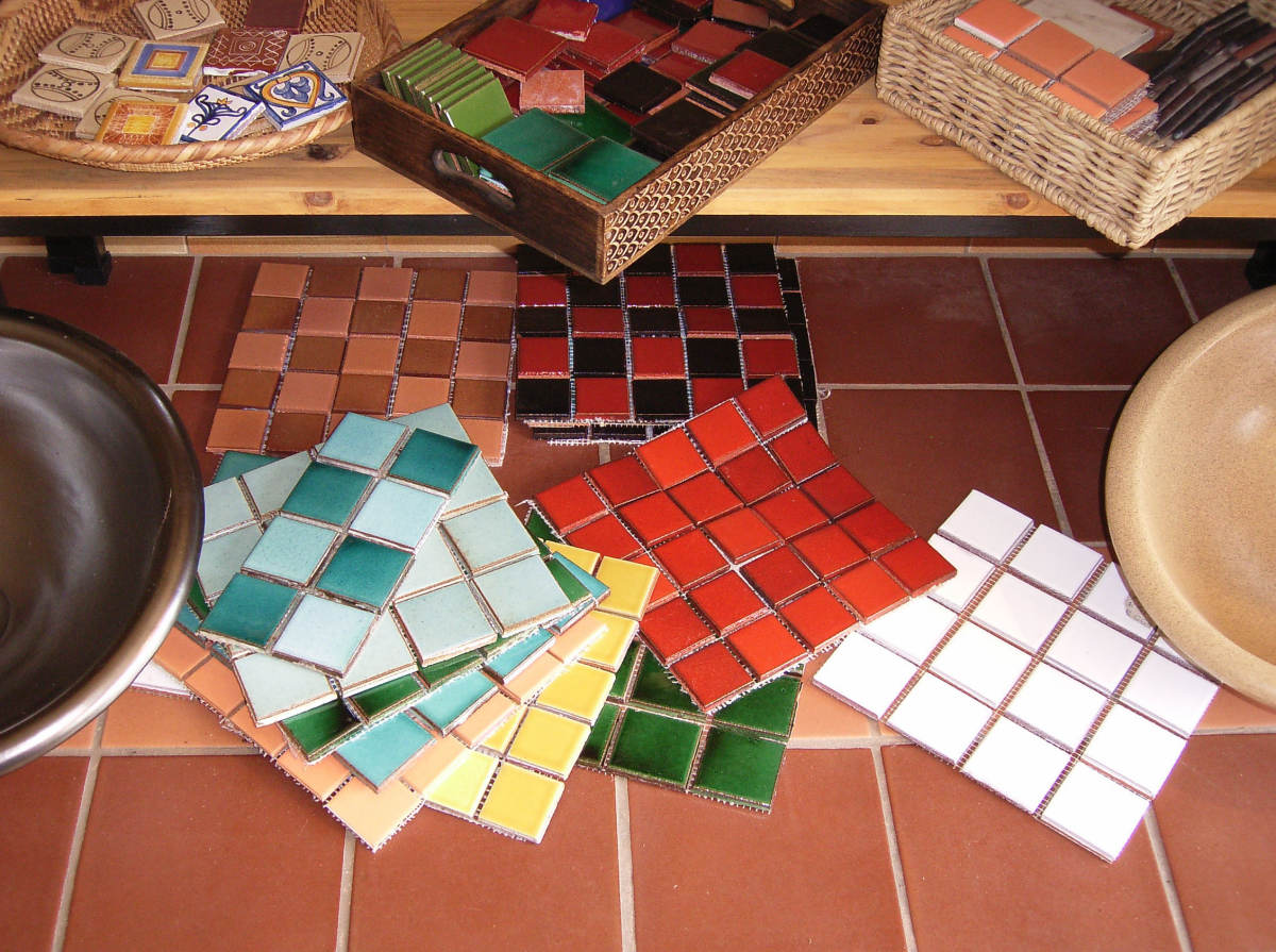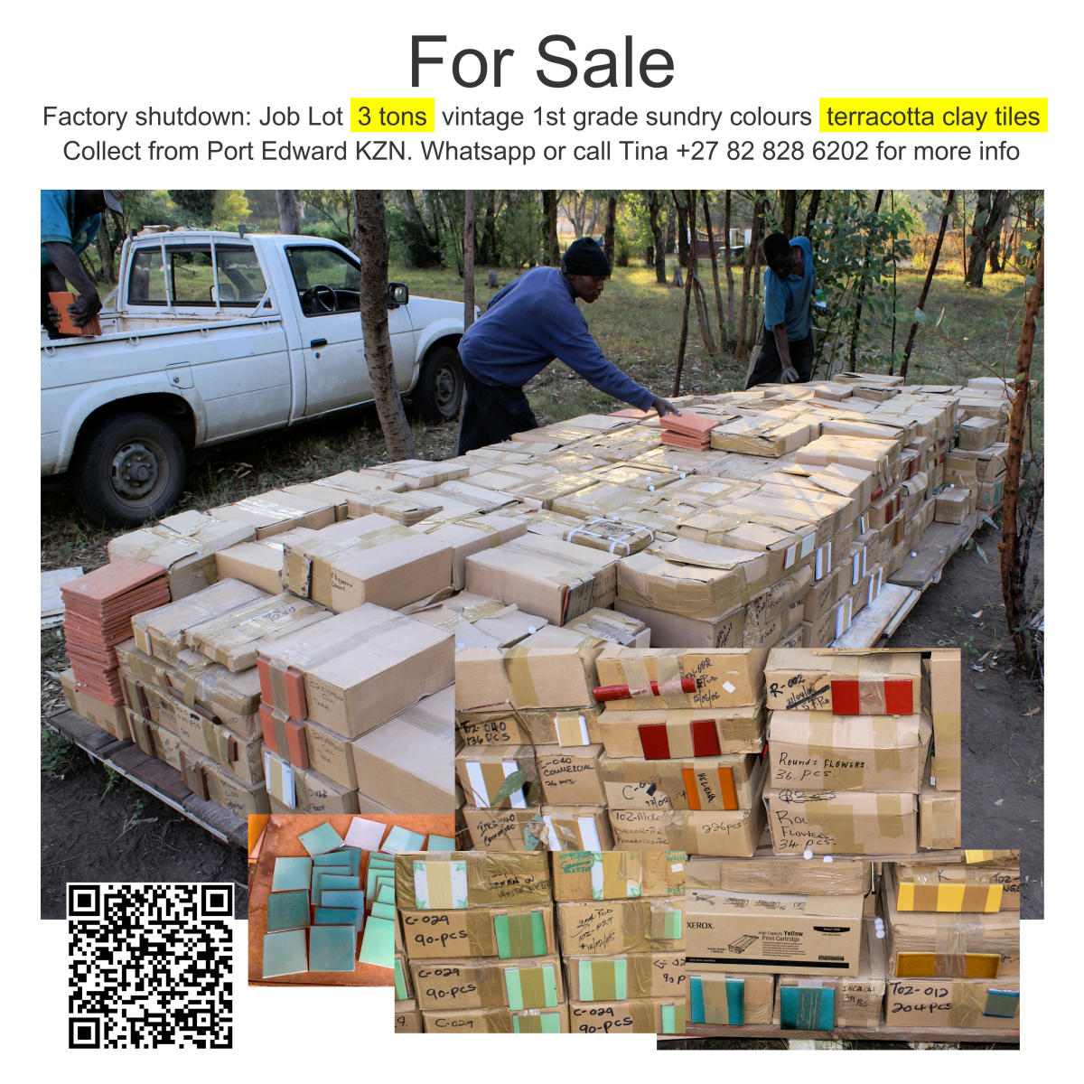 JOBLOT (Factory Shutdown): approx 3 tons of beautiful artisan handcrafted thick terracotta clay tiles, most in size 100x100x10mm. High quality. Durable. Vibrant colours. Some hand-painted décor tiles. Left over from factory shut down. Ideal for small building renovations, splashbacks, highlights, counter-tops, wall features, borders, waterline tiles, etc.