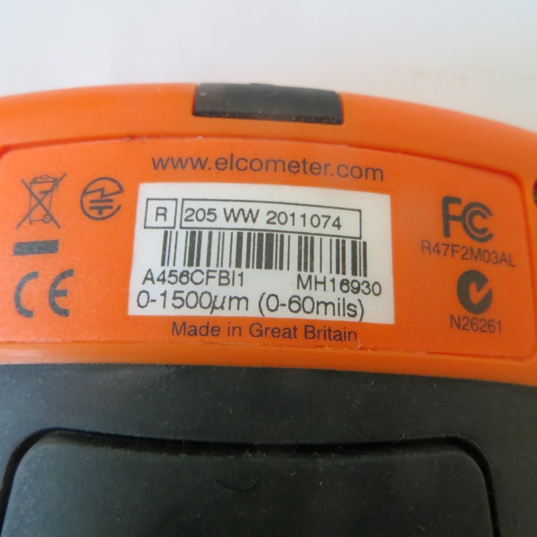Elco model 456 reading paint thickness on steel and gritblasting steel surfaces, range 0 - 1500 micron. New, hardly used. Retired from Consultants.