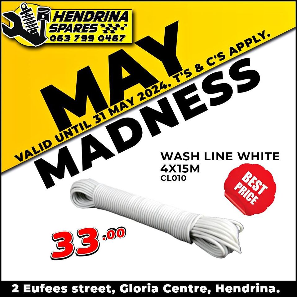 Top off your shopping list with essential buys like our Wash Line White 4X14M โ perfect for all your laundry drying needs. ๐งบ ๐ Get it today for an unbelievable price of just R33.00! Valid until 31 May 2024. T's & C's Apply.