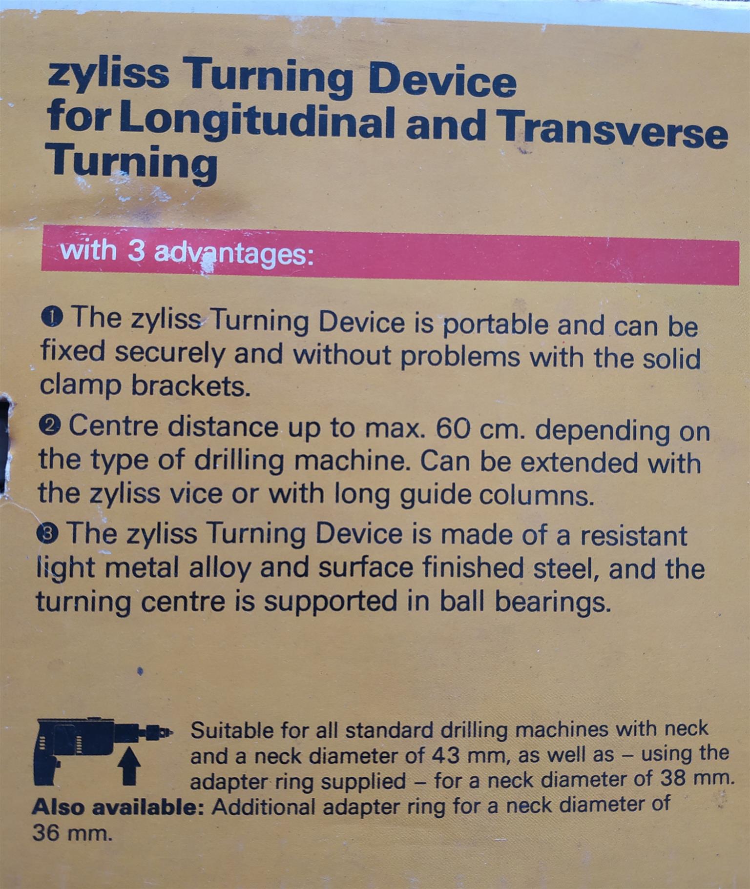 Zyliss brand. As good as new. Only used 4x. In original box. Includes clamps to attach to desk, hand rest and chisel. Drill not included but easy to attach any regular hand drill.